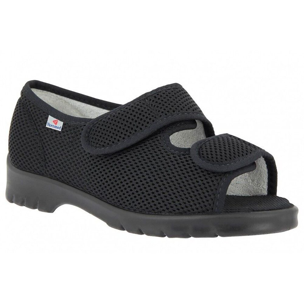 Die Verbandschuhe Unisex Varomed Mesh Istanbul in Schwarz und Размер 43 bieten einen hervorragenden Tragekomfort und optimale Unterstützung. Das Obermaterial besteht aus atmungsaktivem Mesh, das für eine gute Belüftung und ein angenehmes Fußklima sorgt. Der Stil dieser Schuhe ist flach und bietet eine bequeme Passform für den täglichen Gebrauch. Als Hausschuh konzipiert, verfügen sie über einen praktischen Klettverschluss, der ein einfaches An- und Ausziehen ermöglicht und eine individuelle Anpassung ermöglicht. Besondere Merkmale sind die orthopädische Gestaltung und die Cool-Max-Einlage, die für zusätzlichen Komfort und Feuchtigkeitsmanagement sorgt. Das Futtermaterial aus Frottee trägt ebenfalls zum angenehmen Tragegefühl bei. Die Schuhweite ist großzügig dimensioniert und bietet viel Platz, insbesondere für breitere Füße. Die Farbe Schwarz verleiht den Schuhen ein zeitloses und vielseitiges Aussehen, das zu verschiedenen Outfits passt. Die Marke Varomed steht für Qualität und Komfort bei orthopädischen Schuhen. Die offene Schuhspitze sorgt für eine gute Belüftung und Bewegungsfreiheit für die Zehen.
