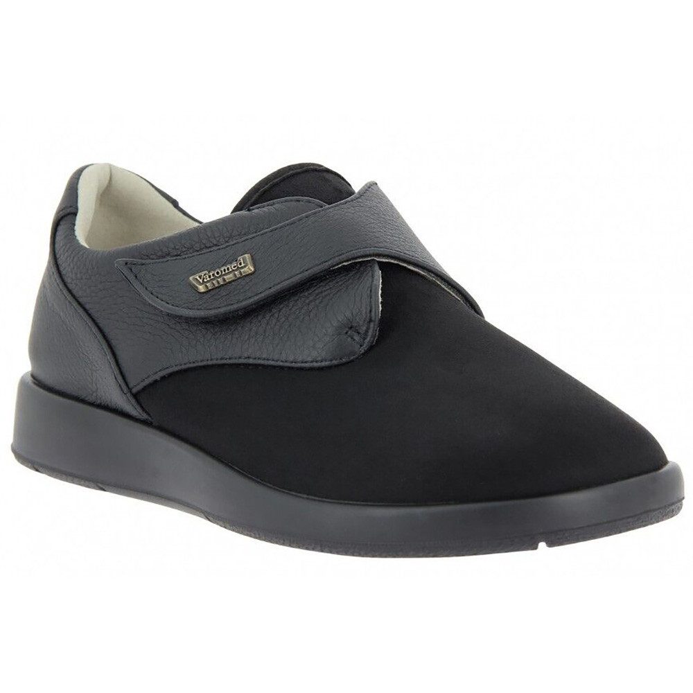Der Varomed Stretchschuh Unisex Teneriffa in Schwarz, Размер 46, ist ein vielseitiger Hausschuh, der Komfort und Funktionalität vereint. Das Obermaterial aus Leder und bedrucktem Stretch bietet eine flexible Passform und Bewegungsfreiheit. Der Klettverschluss ermöglicht ein einfaches An- und Ausziehen sowie eine individuelle Anpassung. Besondere Merkmale sind das Dialino-Innensohlenmaterial und das Dialinofutter, die beide zur Unterstützung der Fußgesundheit beitragen und ein angenehmes Tragegefühl gewährleisten. Mit der Schuhweite L bietet der Stretchschuh ausreichend Platz, besonders für breitere Füße. Die geschlossene Schuhspitze und die Laufsohle aus Polyurethan garantieren eine stabile Konstruktion. Insgesamt ist dieser flache Hausschuh eine ideale Wahl für alle, die Komfort und Stil gleichermaßen schätzen und dabei auch Wert auf orthopädische Eigenschaften legen, unabhängig vom Geschlecht.