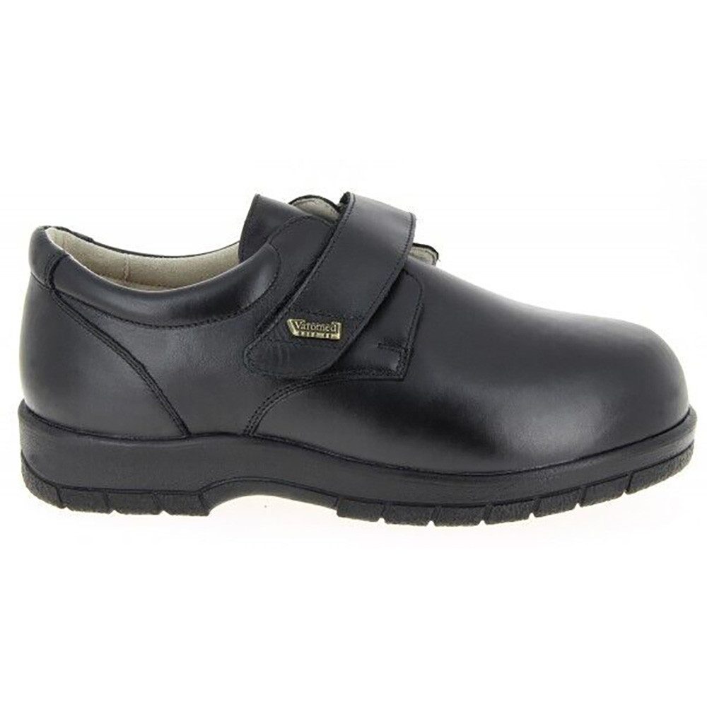 Der Herren Diabetikerschuh "Montreal" von Varomed in zeitlosem Schwarz kombiniert klassisches Design mit erstklassigem Tragekomfort. Mit einer komfortablen Размер 42 und einem praktischen Klettverschluss ermöglicht er ein einfaches An- und Ausziehen sowie eine individuelle Passform. Das hochwertige Leder-Obermaterial verleiht diesem Schuh nicht nur eine ansprechende Optik, sondern auch Langlebigkeit. Das integrierte Weichschaumfußbett bietet zusätzliche Dämpfung und Bequemlichkeit. Dieser Diabetikerschuh ist die perfekte Wahl für Männer, die höchsten Komfort und zeitloses Styling schätzen und dabei auf die Bedürfnisse ihrer Fußgesundheit achten.