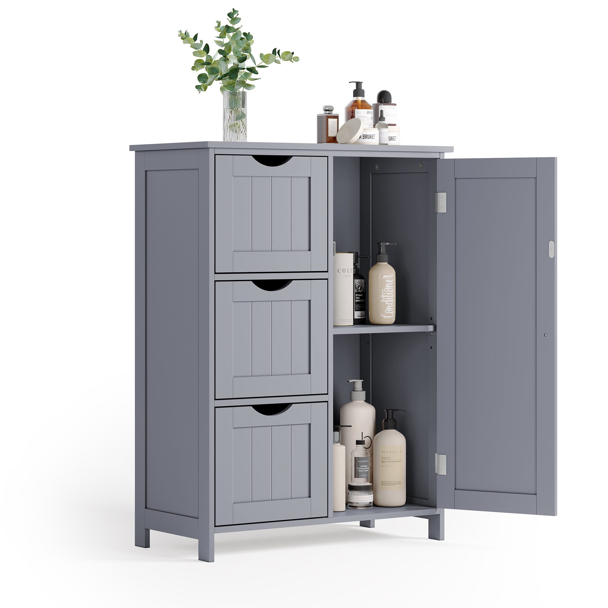 In 3 tiefen Schubladen und den 2/3 großen Fächern hinter der Schranktür können Handtücher, Duschgelflaschen, Reinigungsmittel, Toilettenpapier etc. sortiert verstaut werden und bleiben dem Auge verborgen; Sie müssen sich also keine Sorgen darüber machen, dass Ihr Bad schnell wieder chaotisch aussieht. Ferner ist der Schrank mit einer 3-stufig verstellbaren Regalebene hinter der Tür ausgestattet, sodass Sie den Stauraum des Schranks individuell aufteilen können.