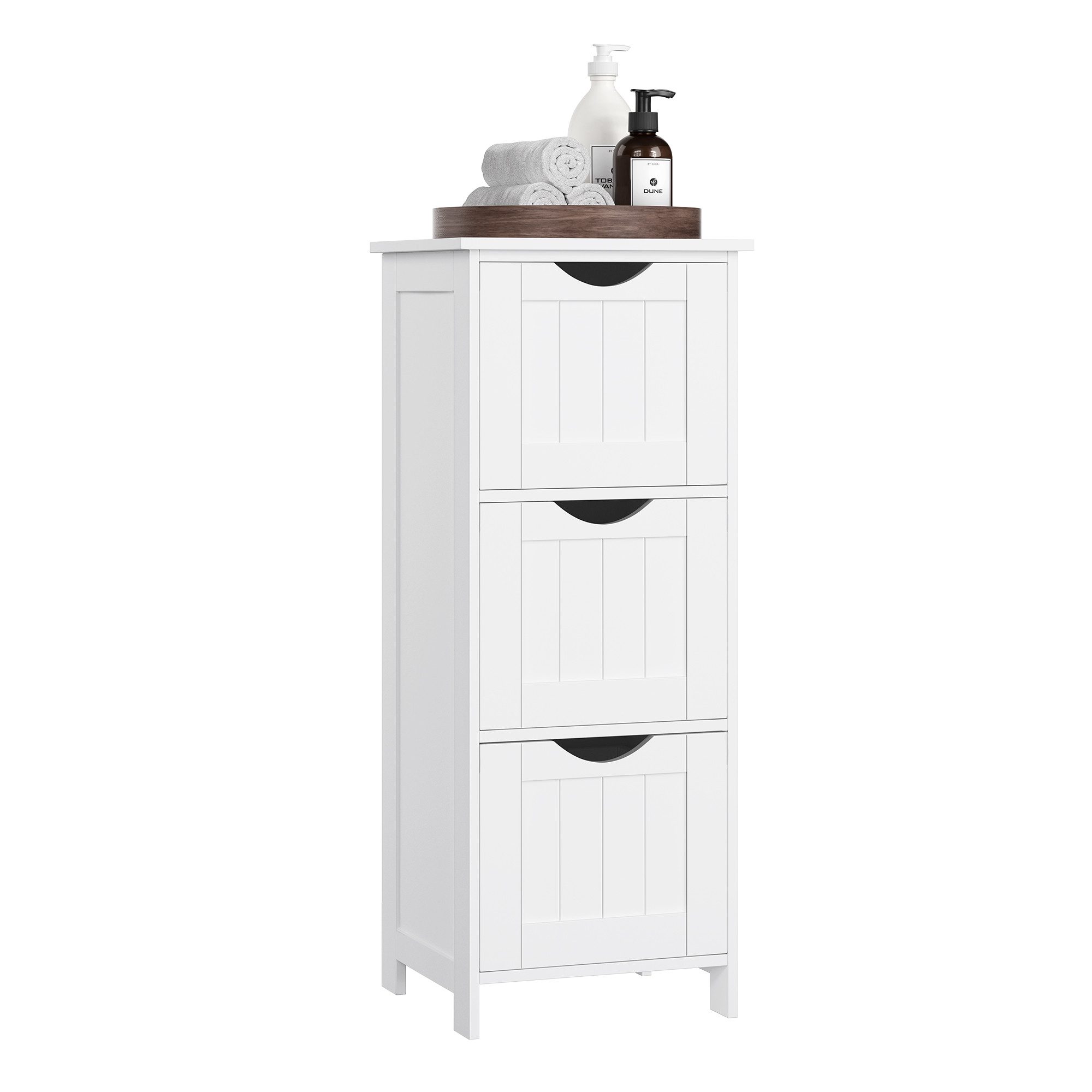 Möchten Sie diesen Schrank nicht im Bad benutzen? Es ist selbstverständlich kein Problem, ihn in anderen Räumen aufzustellen. Dieser Aufbewahrungsschrankharmoniert gut mit der Arbeitsplatte Ihrer Küche, dem Sofa im Wohnzimmer oder dem Bett im Schlafzimmer.
