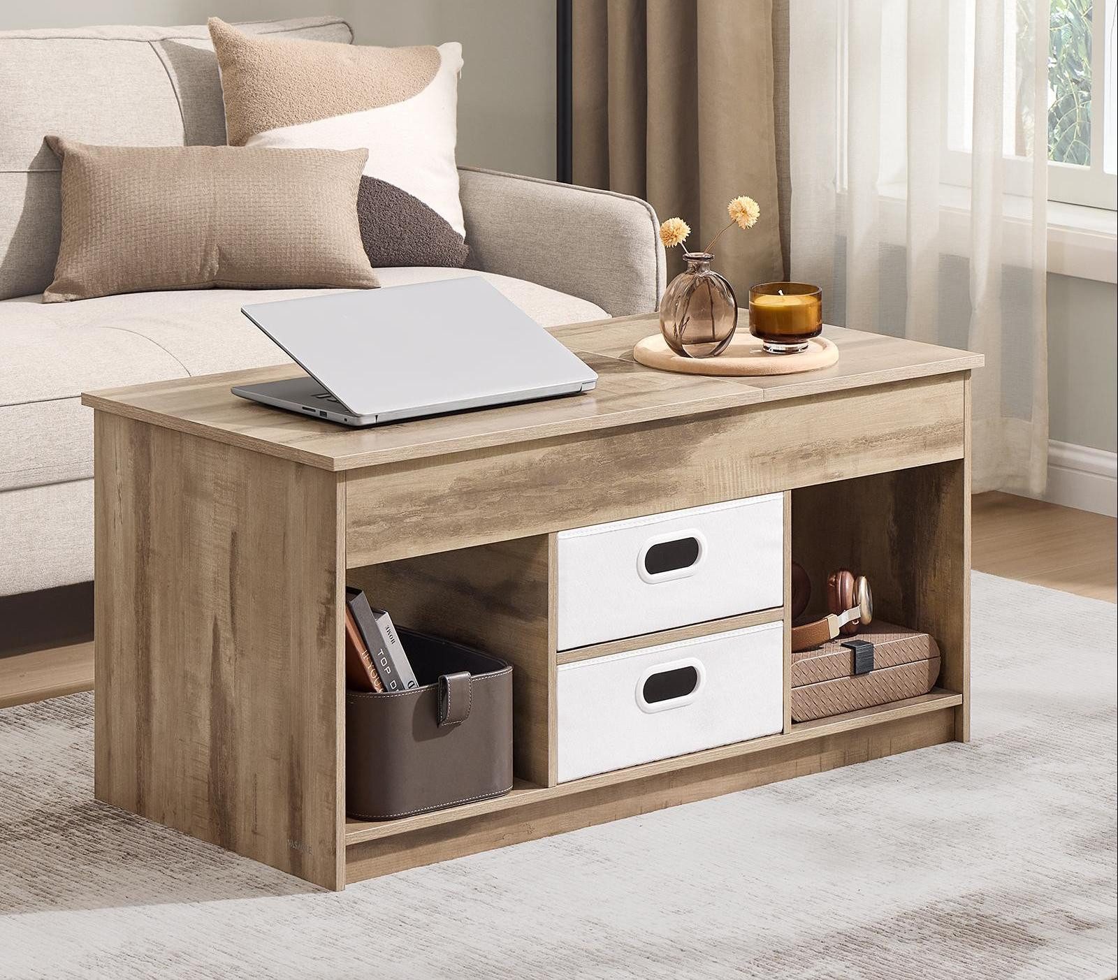 Eigenschaften | höhenverstellbar Viel Stauraum 2 Schubladen versteckte Fächer multifunktional offene Fächer für Wohnzimmer, Homeoffice Aufklappbare Tischplatte |