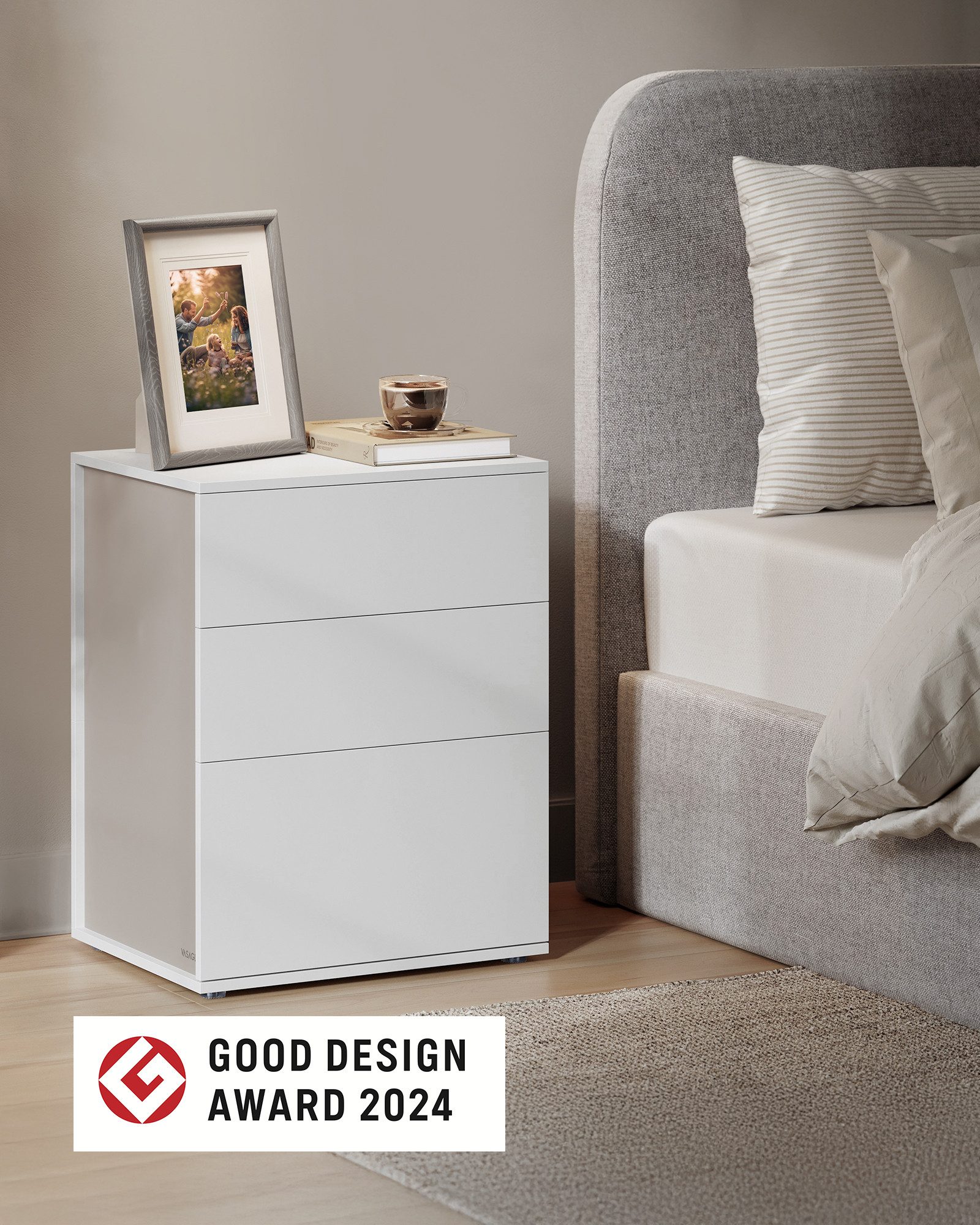 Der Aufbau Ihres neuen Nachttisches war noch nie so einfach! Dank unserer innovativen TOOLLESS-Technologie können Sie diesen Nachttisch in nur ca. 10 Minuten aufbauen – ganz ohne Werkzeug. Dank der durchdachten Verbindungsstücke lassen sich die Einzelteile einfach zusammenstecken – kein stundenlanger Aufbau, kein Hantieren mit unzähligen Zubehörteilen!