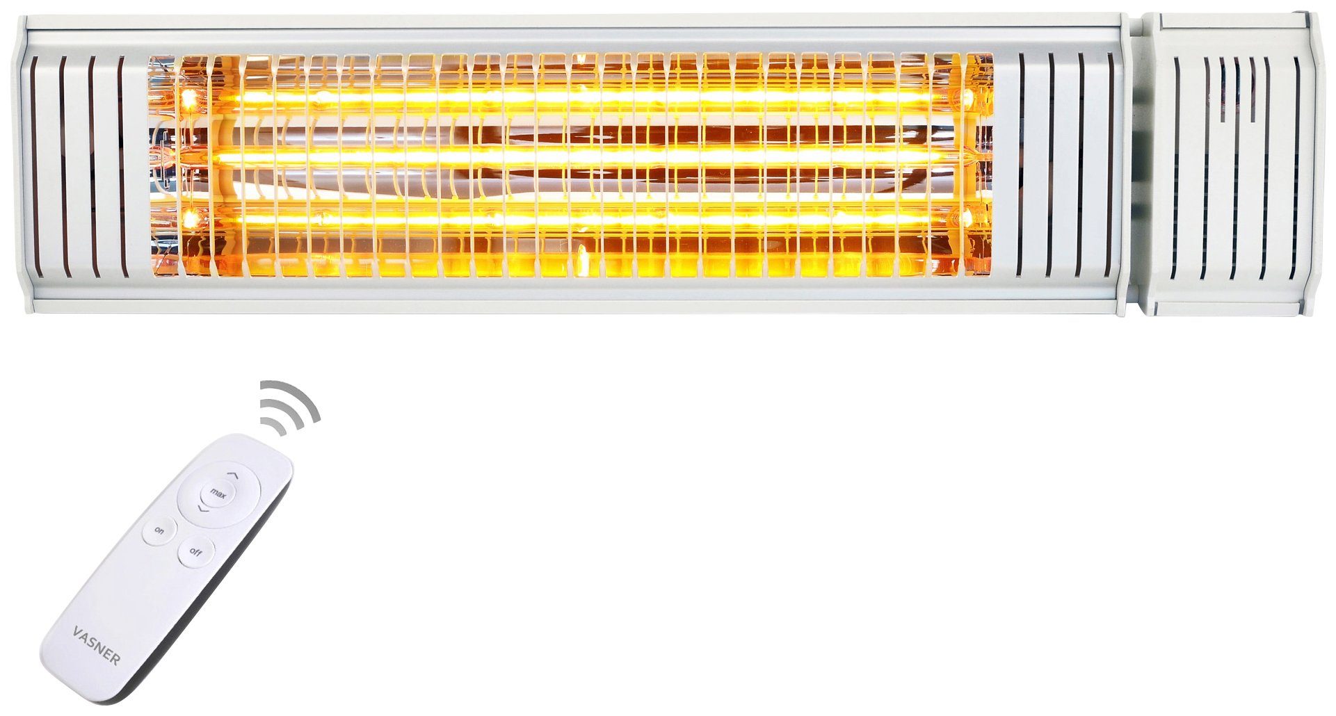 Lieferumfang | 2 x Wandbefestigung mit Wandbügel Appino 20 Infarrotstrahler mit Bluetooth Steuerung Bedienungsanleitung Fernbedienung (Batterien nicht enthalten) Montage Material (Schrauben & Dübel) |