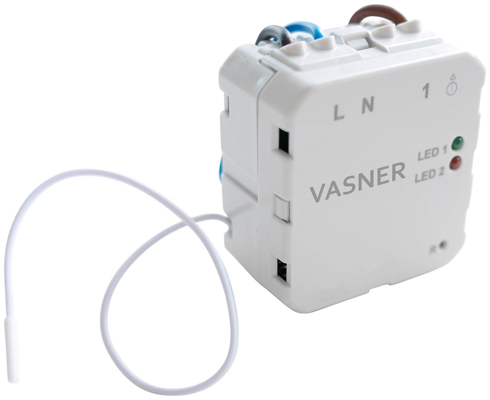 Der Thermostat-Empfänger »VUP« ist ein drahtloser Unterputzempfänger zur Schaltung von elektrischen Heizungen und Infrarotheizungen. Die Schaltung der Stromverbraucher erfolgt auf Basis der voreingestellten Solltemperatur im Thermostatsender. Das Thermostat ist konzipiert zur Nutzung mit dem VASNER VFTB Digital Thermostat Sender, die Funkreichweite zwischen Sender und Empfänger reicht bis zu 35 Meter.