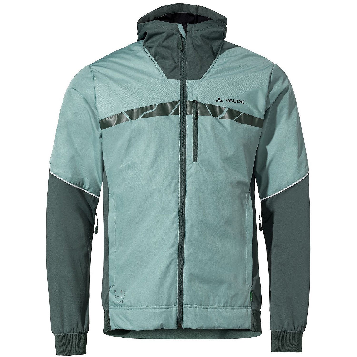 Lässige Übergangsjacke für MTB , Softshelljacke in Hybridkonstruktion , warm, atmungsaktiv und wasserabweisend , klimaneutral; überwiegend aus recycelten Materialien hergestellt
