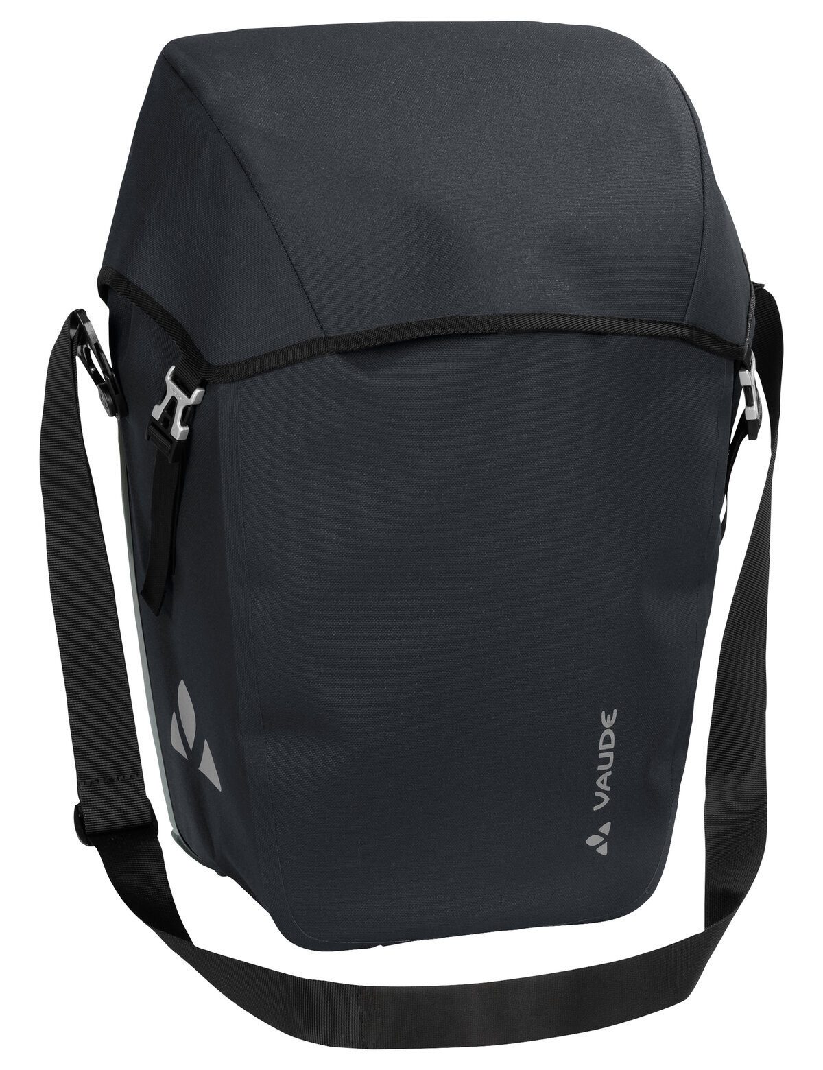Obereisenbach lässt grüßen! Die urbane Radtasche mit Deckelverschluss wird am süddeutschen VAUDE-Firmensitz in der kleinen Ortschaft Obereisenbach hergestellt. Das robuste Material in textiler Optik ist komplett PVC-frei und wasserdicht verschweißt, was eine zusätzliche Regenhülle überflüssig macht. Die Tasche in klarem Design ist ausgestattet mit einem großen Hauptfach inkl. Staubalg. Die Tasche wird mit dem QMR 2.0-System und stabiler Rückenplatte rechts oder links am hinteren Gepäckträger befestigt, ist über einfach bedienbare Handrädchen justierbar und lässt sich schnell und einfach abnehmen. Mit einem Fahrradschloss kann sie direkt am QMR-Haken verriegelt werden. Durch den mitgelieferten Tragegurt kannst Du sie bequem über der Schulter tragen. Mit reflektierenden Elementen. Lieferumfang: eine Tasche (Single). Kann durch diese praktische Zubehör-Taschen ergänzt werden: Sortyour Business, Sortyour Back.
