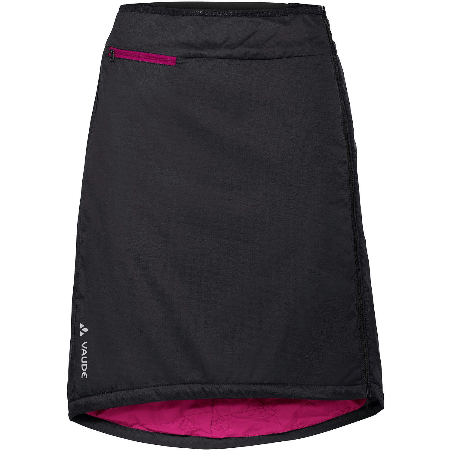 Ein Rock, zwei Seiten, beide ein Hingucker und komplett aus recycelten Materialien: Der knielange Wende-Rock Women's Neyland Padded Skirt von VAUDE ist leicht mit recyceltem PrimaLoft® wattiert und mit einem bequemen Bund mit einem Stretch-Einsatz ausgestattet. Auf der einen Seite ist der Rock schlicht und einfarbig, auf der anderen dekorativ gesteppt. Öffnen und schließen lässt er sich von unten mit einem leicht reparierbaren, durchgehenden Reißverschluss an der Seite. Darüber hinaus bietet er etwas Stauraum in Form einer kleinen Reißverschlusstasche. Der Neyland Wende-Rock von VAUDE ist windabweisend und auf beiden Seiten mit Eco Finish PFC-frei wasser- und schmutzabweisend ausgerüstet.