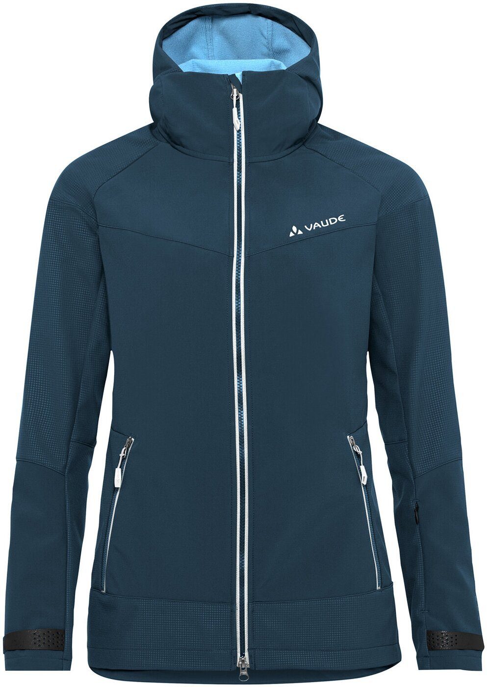 Für ambitionierte Wanderinnen: Wer gern schnell rund um Berg und Tal unterwegs ist, findet in dieser elastischen Softshelljacke mit partiell geprägter Außenseite ein funktionelles und bewährtes Kleidungsstück für das ganze Jahr. Das Softshell-Material schützt dank Membran zu 100 % vor böigem Wind am Gipfel oder auch an kühleren Sommerabenden. Die Unterarmbelüftung geht von der Achsel bis zur Rückseite und sorgt dafür, dass das Körperklima auch bei anstrengenden Bergtouren reguliert werden kann. Der 2-Wege-Frontreißverschluss macht Hosentaschen jederzeit problemlos zugänglich. Die Kapuze passt sich optimal an den Kopf an und lässt sich bequem mit einer Hand verstellen. Die Ärmelabschlüsse können mit Klett reguliert werden. Mit dem hohen Stehkragen und der leicht angerauten Innenseite wird aus der Softshelljacke ein angenehm weiches Kleidungsstück für die Übergangszeit sowie im Sommer hoch oben im Gebirge. Die Softshelljacke ist zu 100 % aus recycelten Materialien hergestellt. Das VAUDE Green Shape-Label steht für ein umweltfreundliches, funktionelles Produkt aus nachhaltigen und bluesign® zertifizierten Materialien.