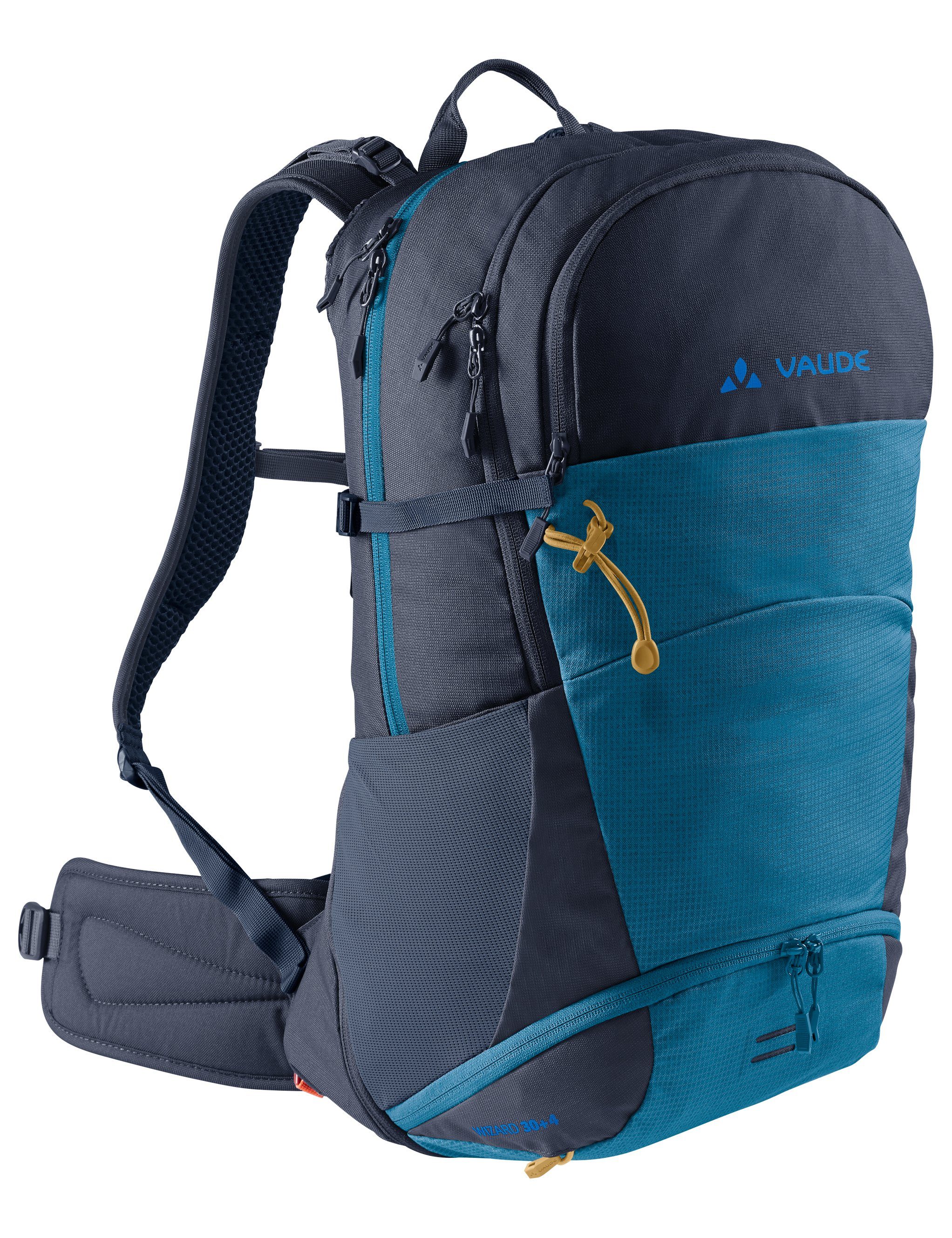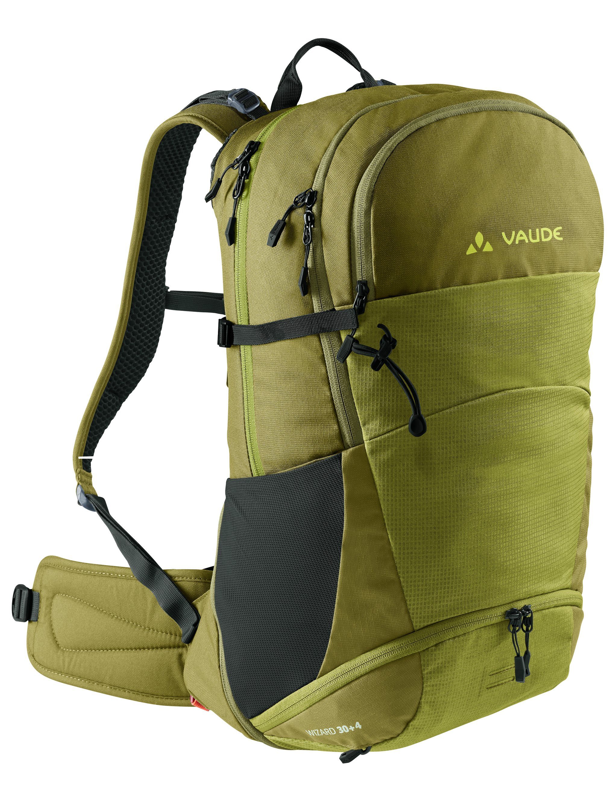 Optimal anpassbarer, sehr geräumiger Wanderrucksack für mehr Komfort auf der Hütten- oder Tagestour in den Bergen: Durch das leicht bedienbare Aeroflex Control-Tragesystem bleibt Dein Rücken gut belüftet bei schweißtreibenden Aufstiegen und sitzt kontolliert am Körper beim Abstieg. Über das Shifting Back Length-System lässt sich der Rucksackrücken zudem auf die eigene Körpergröße perfekt einstellen. Eine integrierte Reißverschluss-Volumenerweiterung und einen praktischer Organizer in der Fronttasche sorgen für Flexibilität und Ordnung. Ein zusätzliches Bodenfach, das vom Hauptfach getrennt ist, kann von außen bedient werden und verstaut im Bedarfsfall die nasse Regenbekleidung oder Wechselwäsche. Dieser geräumige Rucksack ist umfangreich ausgestattet mit außenliegenden Netztaschen, einer Deckeltasche, einer Hüftgurttasche, einer Trinksystem-Vorrichtung und praktischen Kompressionsriemen für vielseitigen Einsatz. Der Wizard 30+4 wurde überwiegend aus Recycling-Material erstellt und mit umweltfreundlichem Eco Finish wasserabweisend ohne Fluorcarbone (PFC) imprägniert. Das VAUDE Green Shape-Label steht für ein umweltfreundliches, funktionelles Produkt aus nachhaltigen und bluesign® zertifizierten Materialien.