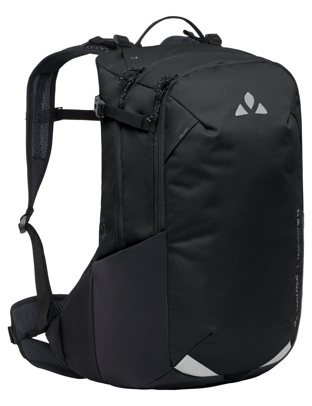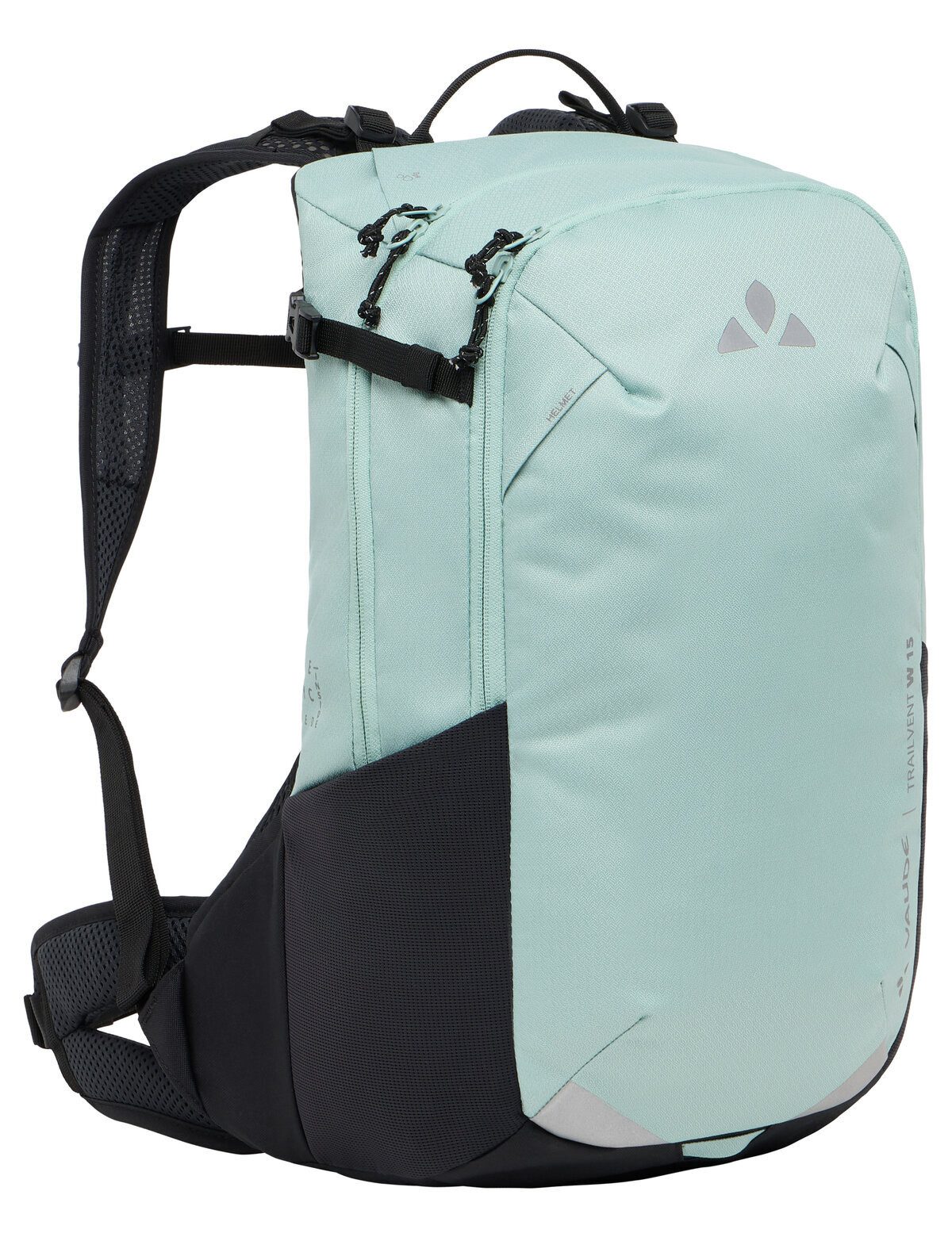 Für den spontanen Ausflug mit dem Mountainbike! Der Trailvent 15 Fahrrad Rucksack für Damen ist dafür ideal. Er beeindruckt mit seinem hervorragend belüfteten Aeroflex 3D-Rückensystem und bietet durch die anpassbare Rückenlänge und gut gepolsterte, auf die weibliche Anatomie abgestimmte Hüft- und Schultergurte sowie einen Brustgurt mit Schlauchhalterung dauerhaften Tragekomfort. Die Fächeraufteilung ist durchdacht: Ein separates Fach für eine Trinkblase, eine Reißverschlusstasche für Wertsachen und ein Schlüsselhalter befinden sich im großen Hauptfach. In der Fronttasche lassen sich Luftpumpe, Werkzeug und Ersatzschlauch verstauen. Seitliche Kompressionsriemen im oberen Drittel sichern den Inhalt, während Netz-Außentaschen für schnell erreichbare Gegenstände da sind. Eine Helmhalterung, ein Blinklichthalter, große reflektierende Elemente und eine integrierte Regenhülle runden die Ausstattung ab. Der Fahrrad Rucksack für Damen ist mit Eco Finish PFC-frei wasserabweisend ausgerüstet. Das VAUDE Green Shape-Label steht für ein umweltfreundliches, funktionelles Produkt aus nachhaltigen Materialien.
