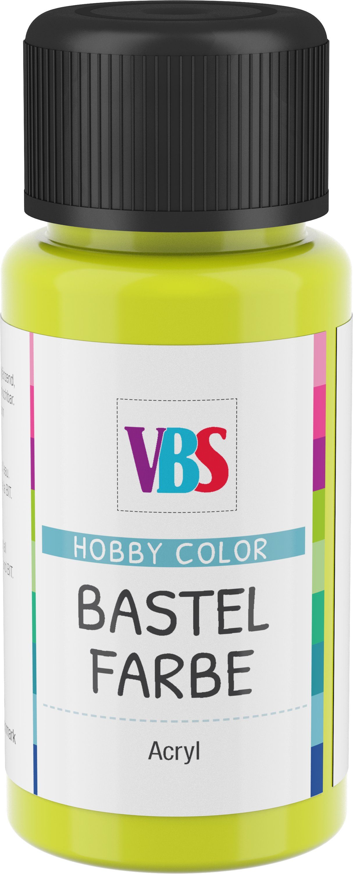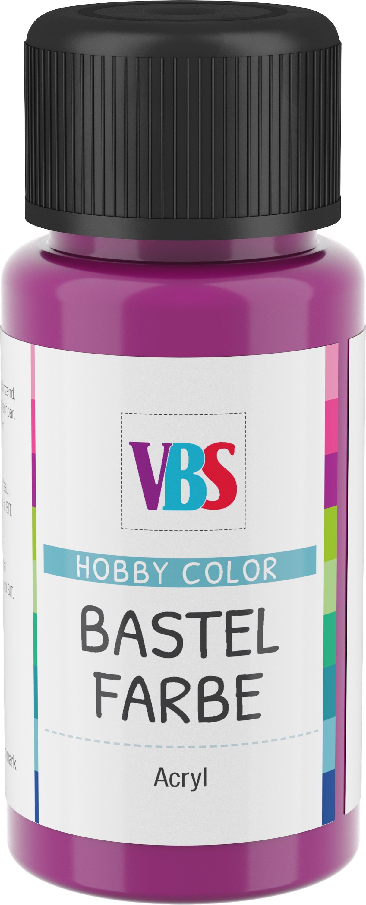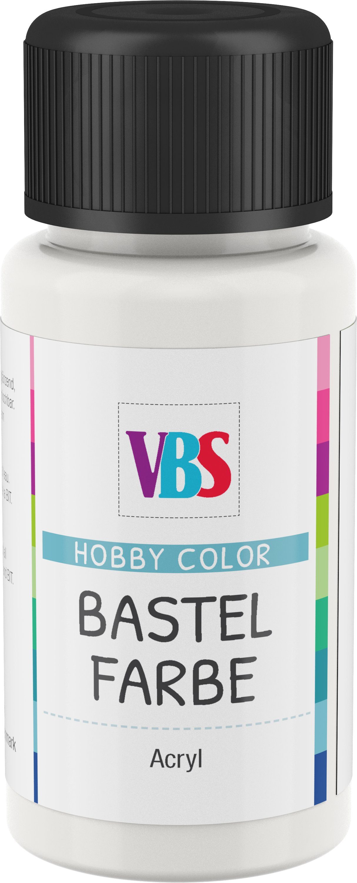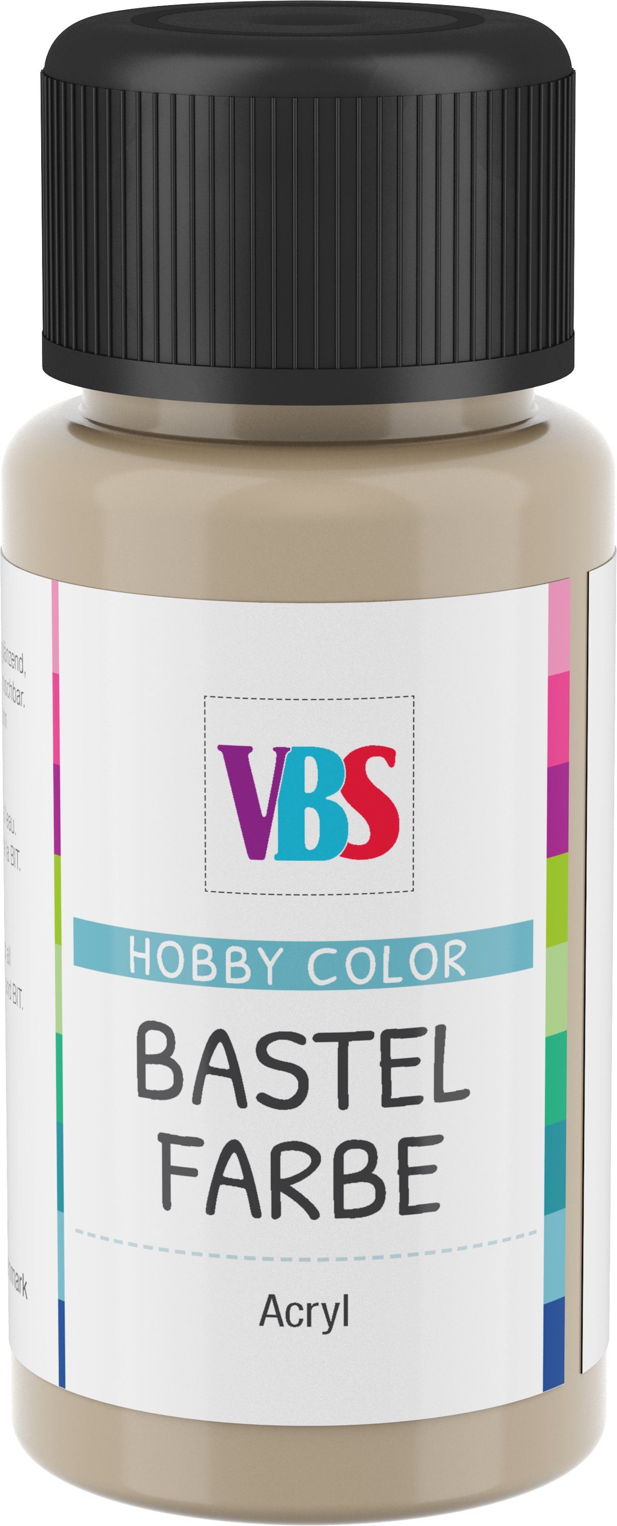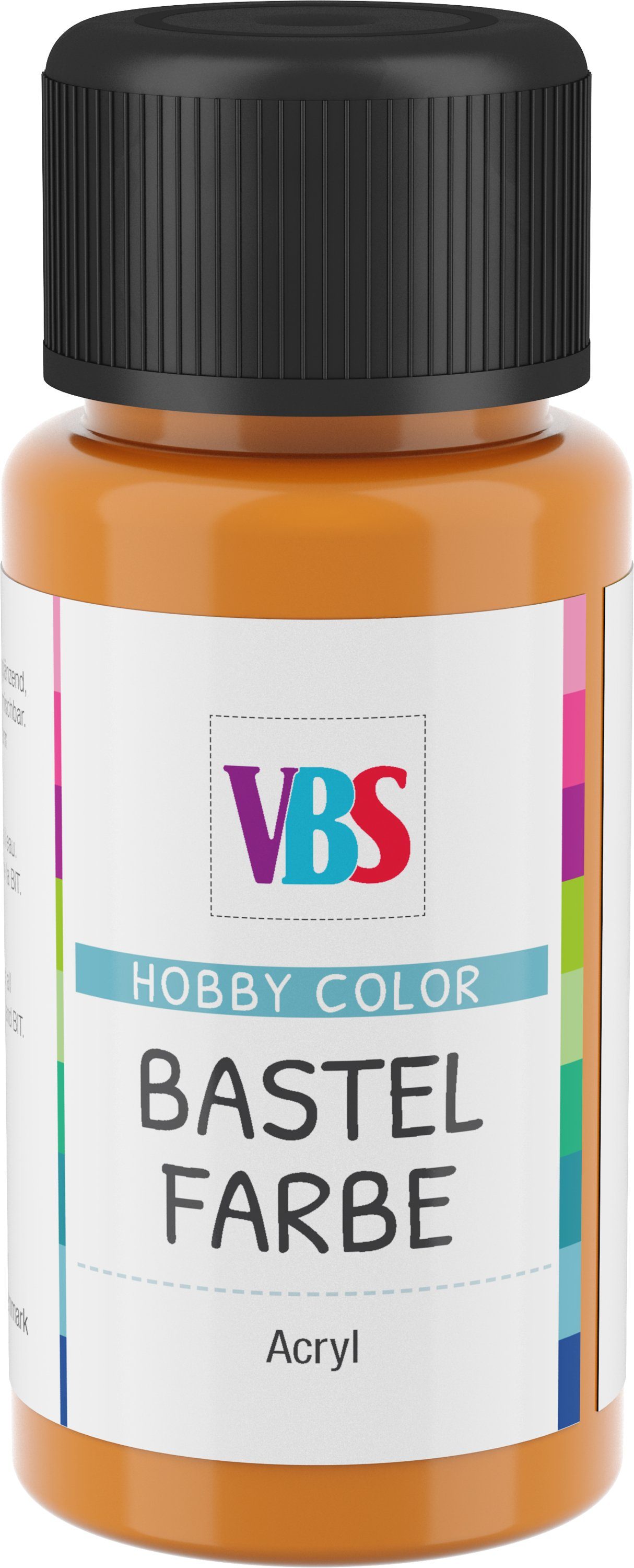 Die VBS Bastelfarbe ist eine hochwertige, umweltfreundliche und lichtechte Farbe auf Acryl-Basis. Besonders wichtig, auch Kinder können problemlos und sicher mit dieser Farbe arbeiten, da sie speichelecht ist. Die Bastelfarbe lässt sich wunderbar verstreichen, ist wasserverdünnbar, gut deckend und trocknet seidenglänzend auf. Eine ideale Farbe zum Bemalen von Holz, Gießmassen, Stein, Leder, Kunststoff, Styropor und vielem mehr….! Mit dieser Hobbyfarbe sind Ihrer Kreativität keine Grenzen gesetzt und Ihre Malprojekte lassen sich einfach verwirklichen.
