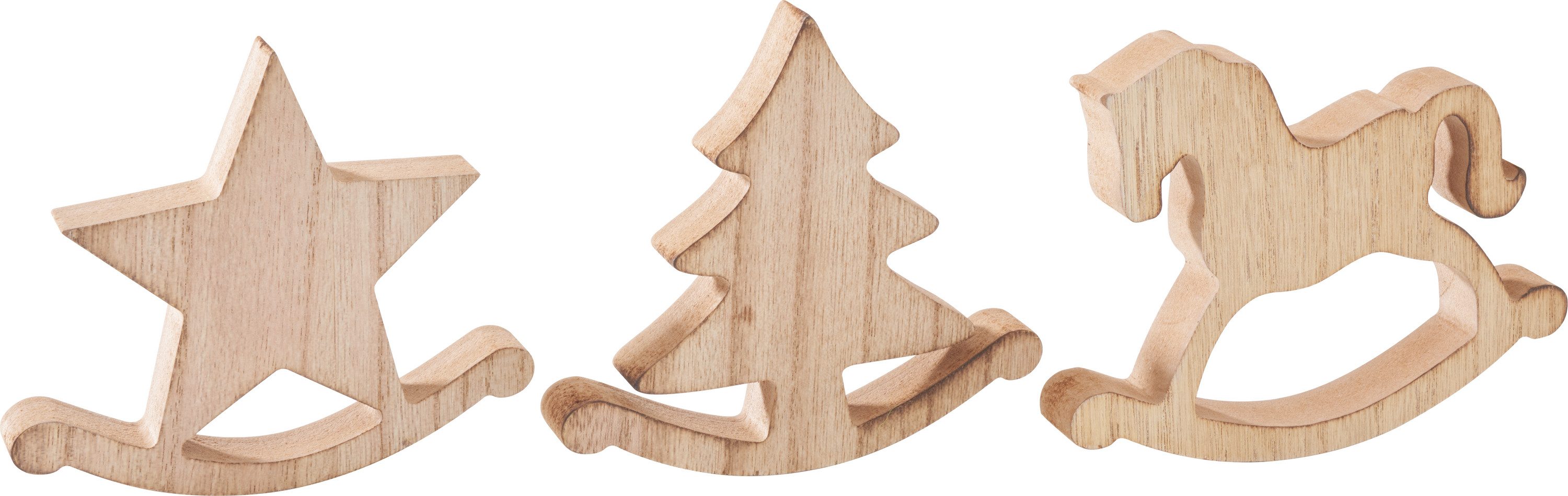 Verschönere dein Zuhause mit den VBS Holz-Schaukelfiguren 'Pferd, Tanne und Stern'. Dieses 3er-Set aus MDF-Holz ist perfekt für kreative Köpfe wie dich. Die einseitig furnierten Figuren sind unbemalt und bieten dir die Freiheit, sie ganz nach deinem Geschmack zu gestalten. Mit Größen zwischen 9,5 cm und 13 cm und einer Stärke von 1,5 cm sind sie ideal für die Servietten- oder Decoupage-Technik. Всеs, was du brauchst, ist ein geeigneter Kleber und eventuell ein Lack zum Versiegeln. Ob bemalen, bekleben oder dekorieren – die Möglichkeiten sind vielfältig. Lass deiner Kreativität freien Lauf und kreiere einzigartige Dekorationen für die Weihnachtszeit!
