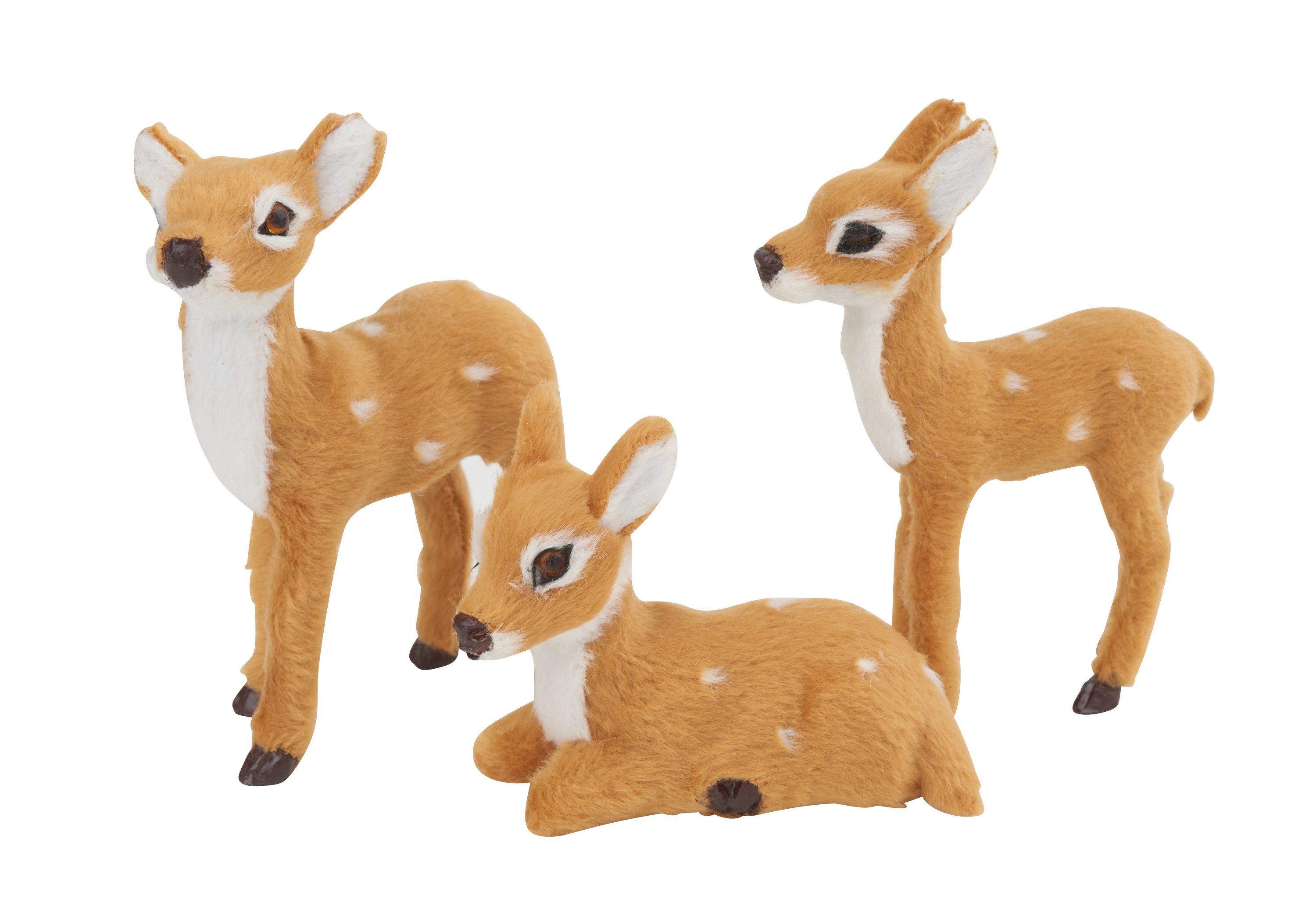 Ein wunderbares 3er-Set VBS Reh 'Konin' bestehend aus 1 liegenden Reh mit einer Размер von ca. L 7,3 cm x B 3 cm x H 6 cm und zwei stehenden Rehen mit einer Размер von L 7 cm x B 2,7 x H 10 und L 7 cm x B 2 cm x H 9,5 cm. Die 3 Rehe sind mit einem Haarkleid aus Synthetik überzogen. Dadurch sehen die Rehe sehr natürlich aus. Für viele zauberhafte Dekorationen wie Mini-Gärten, Waldszenen, Gestecke oder Kränze.