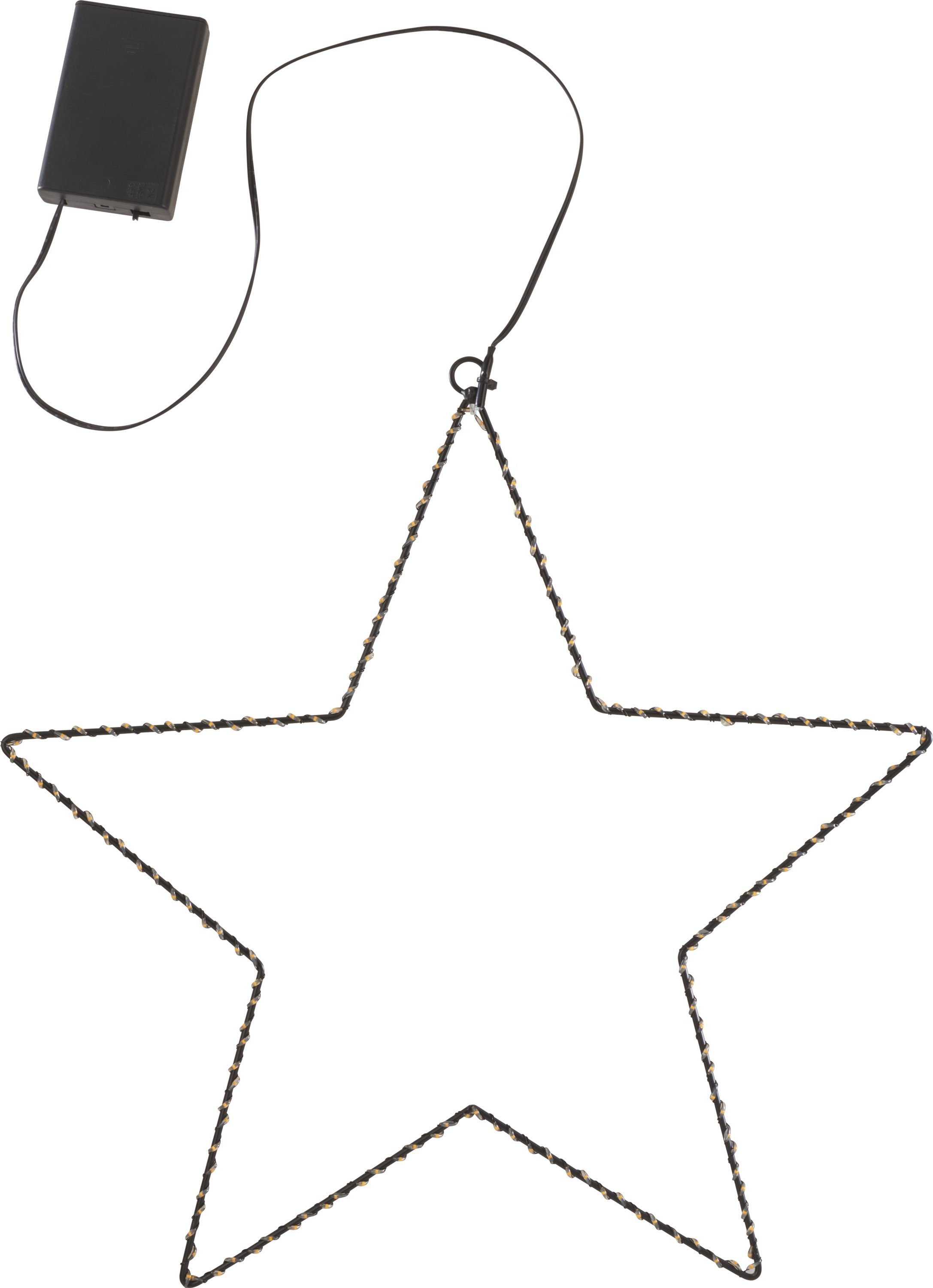 VBS LED Metallring 'Stern', Ø 37 cm mit Timerfunktion. Es werden 3 x AA Batterien benötigt (nicht im Lieferumfang enthalten). Die warmweißen LEDs sind um den Stern gewickelt und haben eine Zuleitung zur Batteriebox von ca. 51 cm. Inklusive Öse mit einem Ø von ca. 1 cm zum Aufhängen mit einer Kordel oder Schleifenband. Der Stern kann mithilfe des Schalters ein- und ausgeschaltet werden oder es wird die Timerfunktion gewählt. Hier leuchtet der Stern für 6 Stunden und schaltet sich dann für 18 Stunden automatisch aus. Eine stimmungsvolle Weihnachtsdekoration für das Fenster. Kann prima mit Trockenblumen, Streuteilen und weiteren Naturmaterialien ergänzt werden.