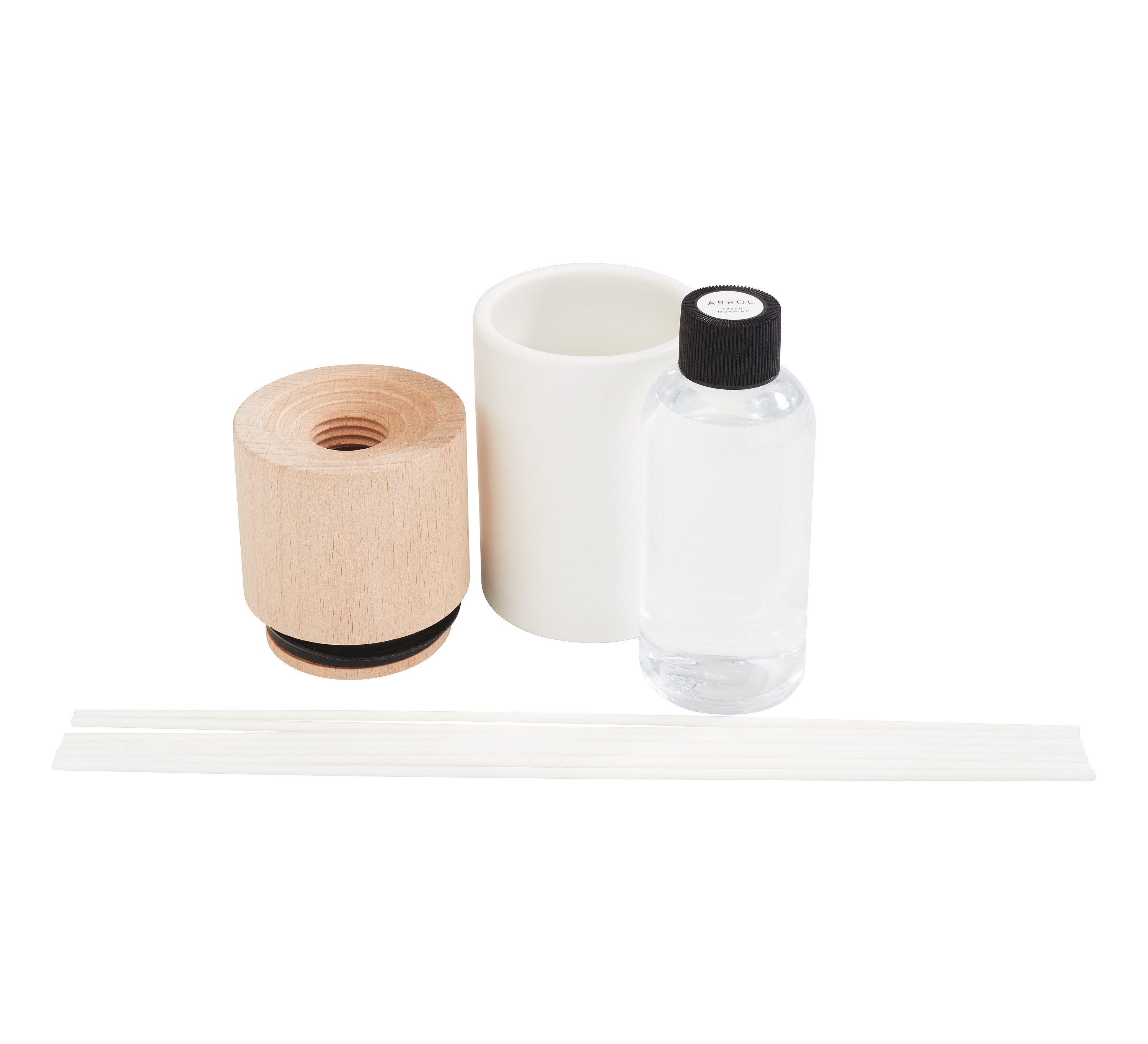 Erlebe eine neue Dimension der Raumbeduftung mit unserem Raumduft mit Stäbchen. Die Kombination aus Duftöl und Schmuckvase sorgt für eine einzigartige Atmosphäre in deinem Zuhause. Die Flasche mit 136 ml Duftöl ist in einer dekorativen Keramikvase mit Holzdeckel versteckt und wird über die Stäbchen an die Luft abgegeben. Mit einem Ø von 6,5 cm und einer Höhe ohne Stäbchen von 14,5 cm passt der Raumduft perfekt in jeden Raum. Lass dich von der zeitlosen Optik verzaubern und genieße den angenehmen Duft in deinem Zuhause. Erlebe jetzt die perfekte Kombination aus Duft und Design mit unserem Raumduft mit Stäbchen.