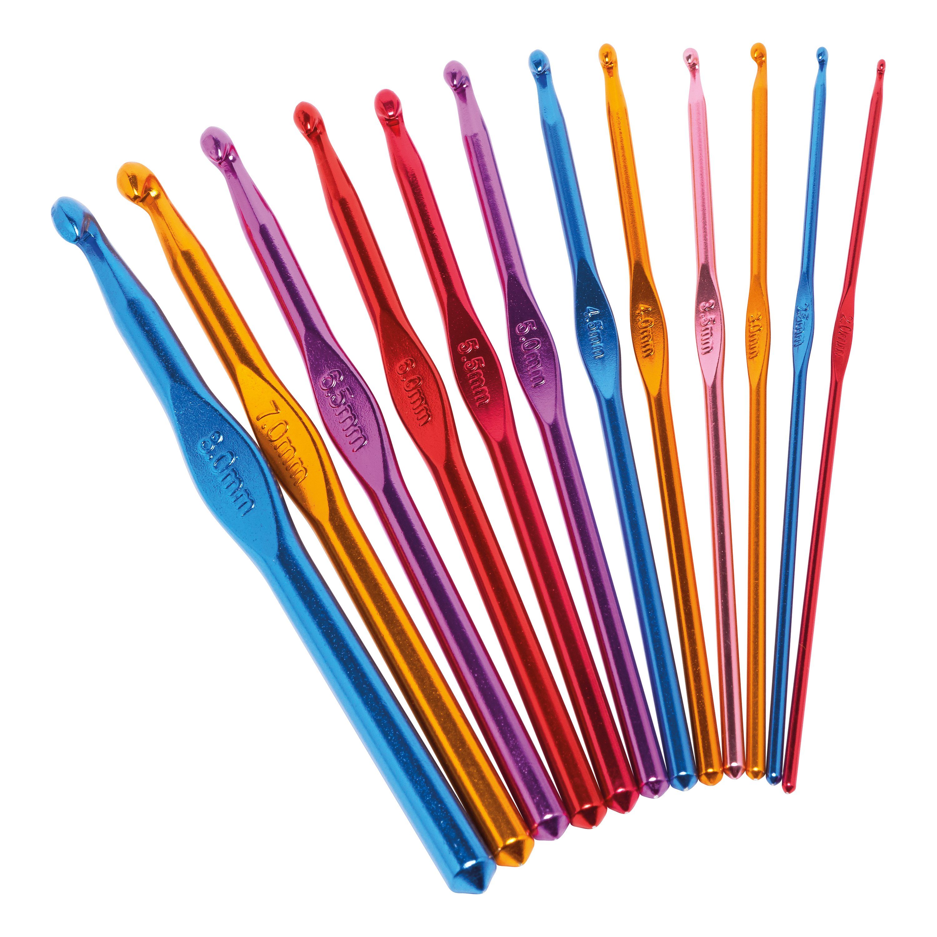 In diesem Häkelnadel-Set sind die 12 wichtigsten Häkelnadeln in hervorragender Ausführung enthalten. Je eine Häkelnadel aus Aluminium in den Stärken 2,0, 2,5, 3,0, 3,5, 4,0, 4,5, 5,0, 5,5, 6,0, 6,5, 7,0 und 8,0. Jede Häkelnadel ist 15 cm lang, mit eingeprägter Nadelstärke versehen und zur optischen Unterstützung in unterschiedlicher Farbe eingefärbt. Die Nadeln sind sehr angenehm im Griff. Sie liegen gut in der Hand und sind die perfekten Nadeln für das nächste Häkelprojekt.
