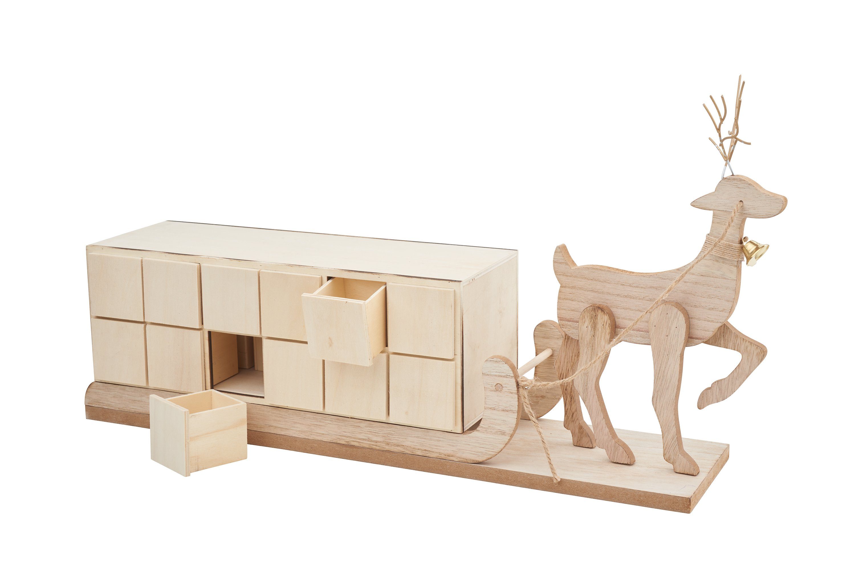 Der schöne VBS Kalender 'Rentier mit Schlitten' ist mit 24 Geschenkkästchen ausgestattet, die eine Размер von ca. 5,2 cm x 5,7 cm haben. Das Innenmaß beträgt ca. 4,3 cm x 5 cm. Viel Platz für Geschenke und Süßigkeiten. Gestalten Sie den Kalender ganz nach Ihren Wünschen und Vorstellungen mit Bastelfarben, Zahlen, Streuteilen und Motivpapier. Ein tolles Geschenk für große und kleine Kinder!