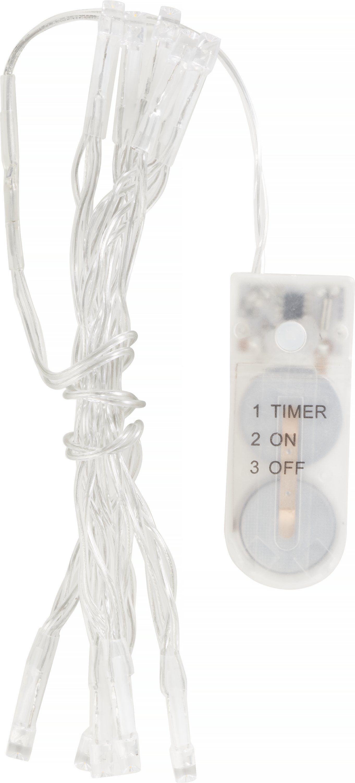 VBS Mini-LED-Lichterkette mit Timer und warmweißem Licht. Das transparente Kabel ist unauffällig und die kleine Batteriebox mit 2 CR2032 Batterien (enthalten) hat einer Timerfunktion von 6/18 Stunden. Toll für Dekorationen aller Art.