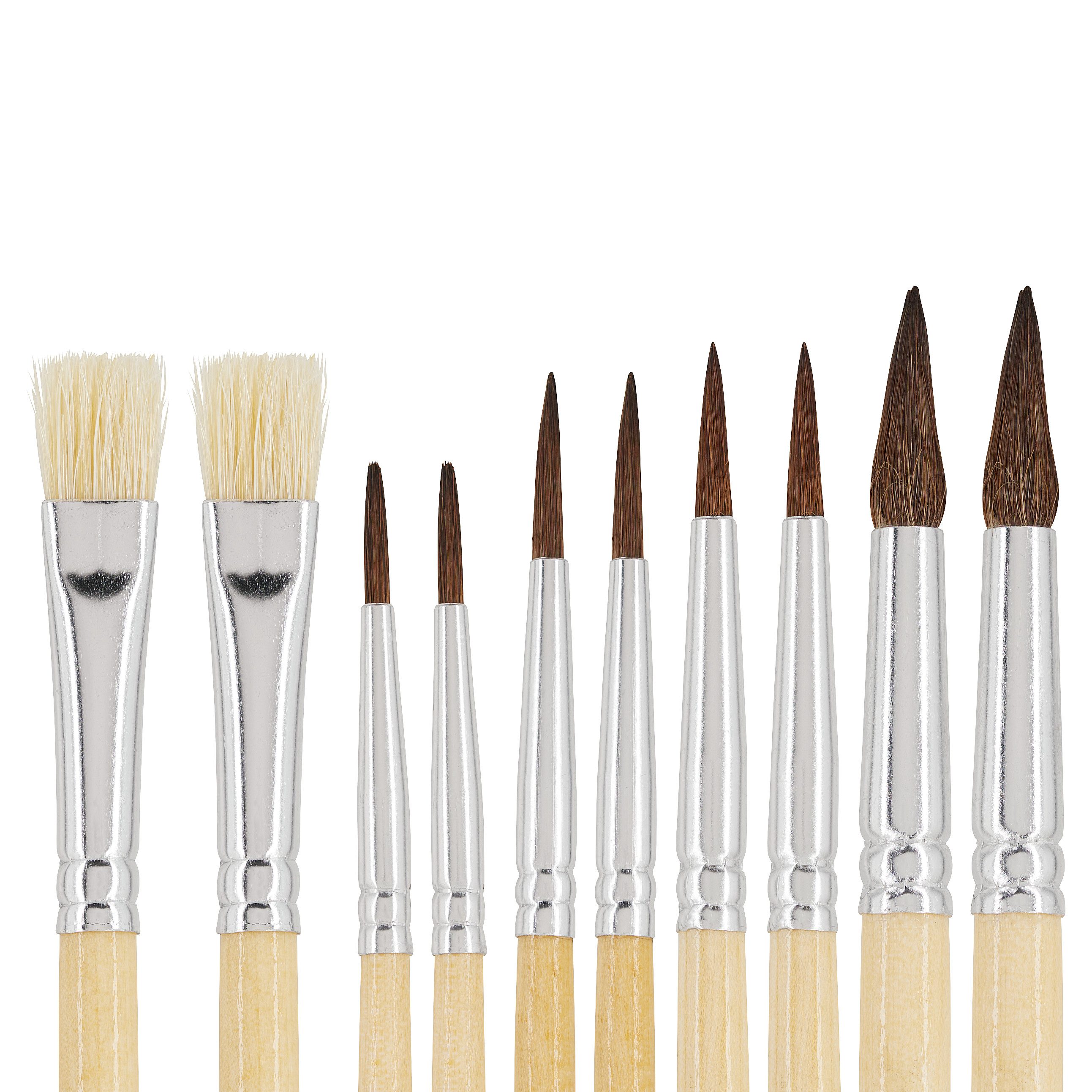 VBS Schulpinsel-Set, Inhalt 10 Stück in den Größen 2-10. Enthalten sind 2 flache Borstenpinsel Размер 8 und je 2 runde Haarpinsel Размер 2, 4, 6 und 10. Die Pinselspitzen sind in einer Metallzwinge gefasst. Ob breite Pinselstriche oder feine Ausarbeitungen, mit diesem Set ist immer der richtige Pinsel zur Hand. Für alle Malbegeisterten.