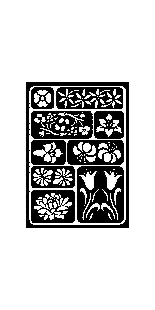 Diese Schablonen sind auf der Rückseite mit einer haftenden Beschichtung versehen. So verrutscht Ihre Schablone nicht. Ideal für Holz, Glas, Textilien, Leinwand. Haftet auch auf senkrechten Untergründen. Perfekt positionierbar, da transparent und einzeln abnehmbare Motive. Ideal für kleine Holz-, Glasgegenstände, Textilien uvm. Die Motive sind lasergestanzt.