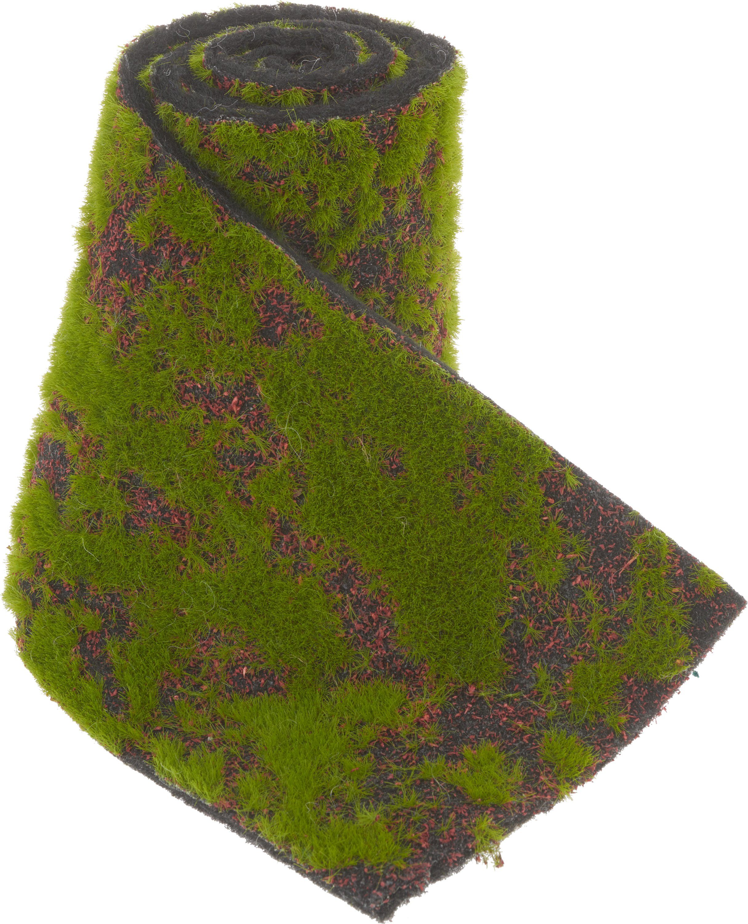 VBS künstliches Moosband mit einer Breite von ca. 12 cm und einer Gesamtlänge von ca. 100 cm. Es ist ca. 1 cm stark und kann zusammengedrückt werden. Die Grundlage ist Vlies, wodurch eine hohe Flexibilität gewährleistet wird. Das Band mit künstlichem Moos ist mit braunen Stellen versehen, die für eine naturnahe Optik sorgen. Ideal als Unterlage für Modelllandschaften und Miniaturwelten. Das flexible Band kann mit einer Schere zugeschnitten werden und eignet sich auch für unebene Flächen.