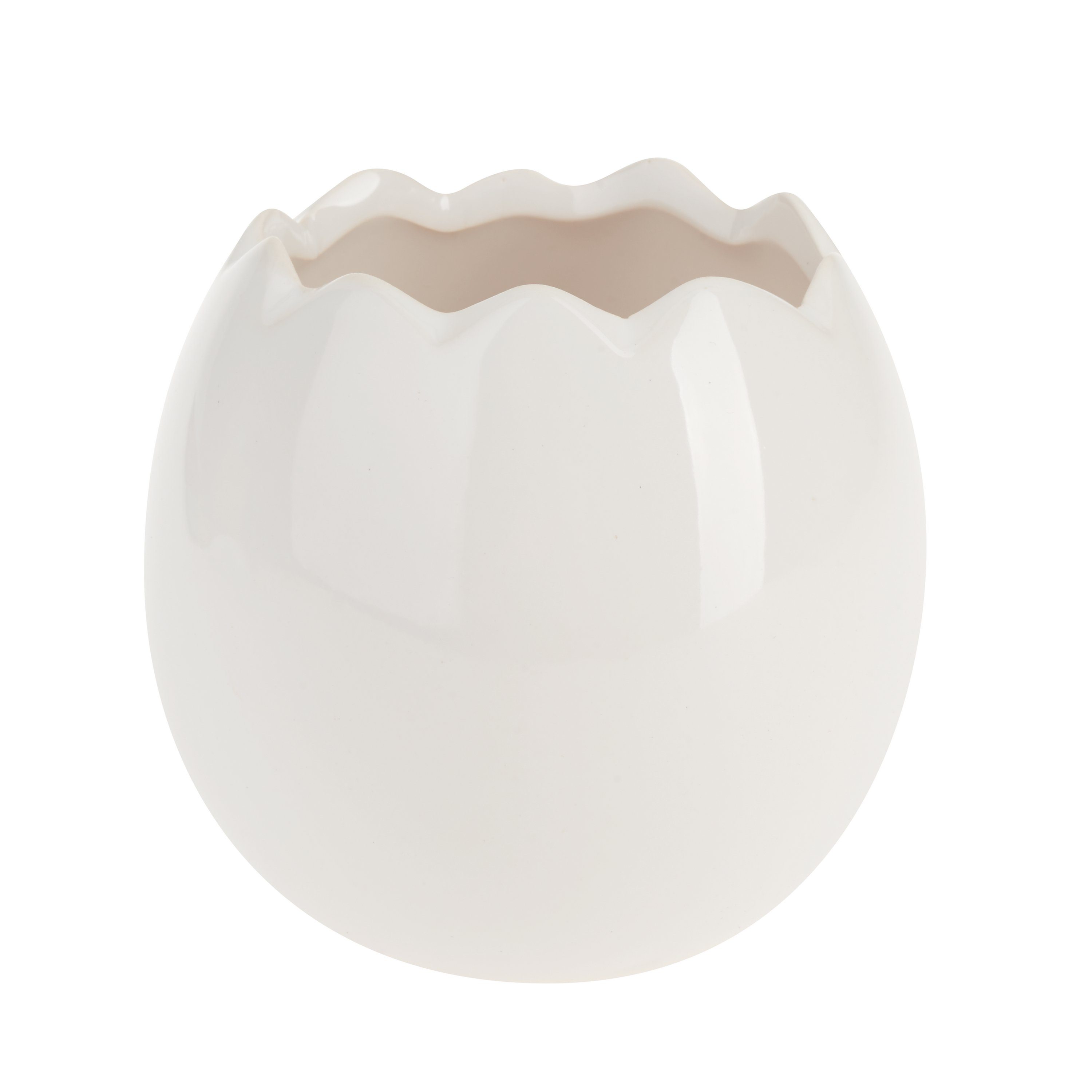 Tolles, hochwertiges VBS Deko-Ei, offen, aus Porzellan mit Wellenrand. Der Innen-Ø der Öffnung beträgt ca. 6 cm.