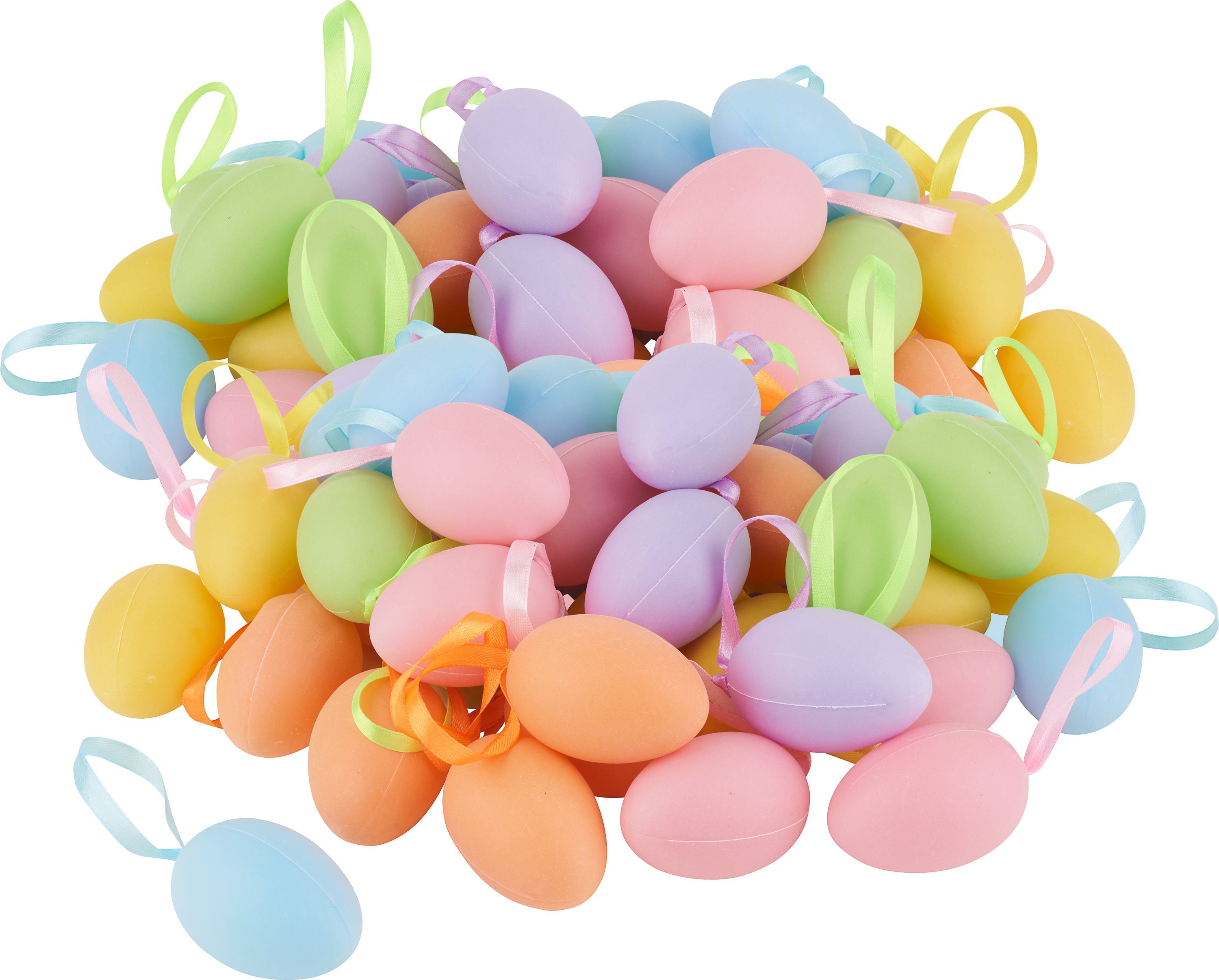 Die VBS Deko-Eier sind farblich sortiert und ca. 6 cm hoch und haben einen Ø von ca. 3,6 cm. Die Длина der Bändchen zum Aufhängen misst ca. 5 cm. Sie erhalten jeweils 14 Kunststoff-Eier in den Farben Gelb, Rosa, Hellblau, Orange, Lila und Hellgrün. Insgesamt sind 84 Eier in der Verpackung enthalten. Besonders gut für Gestecke, Dekorationen im Fenster oder auch an Sträuchern geeignet. Eine tolle Dekoration für drinnen und draußen.