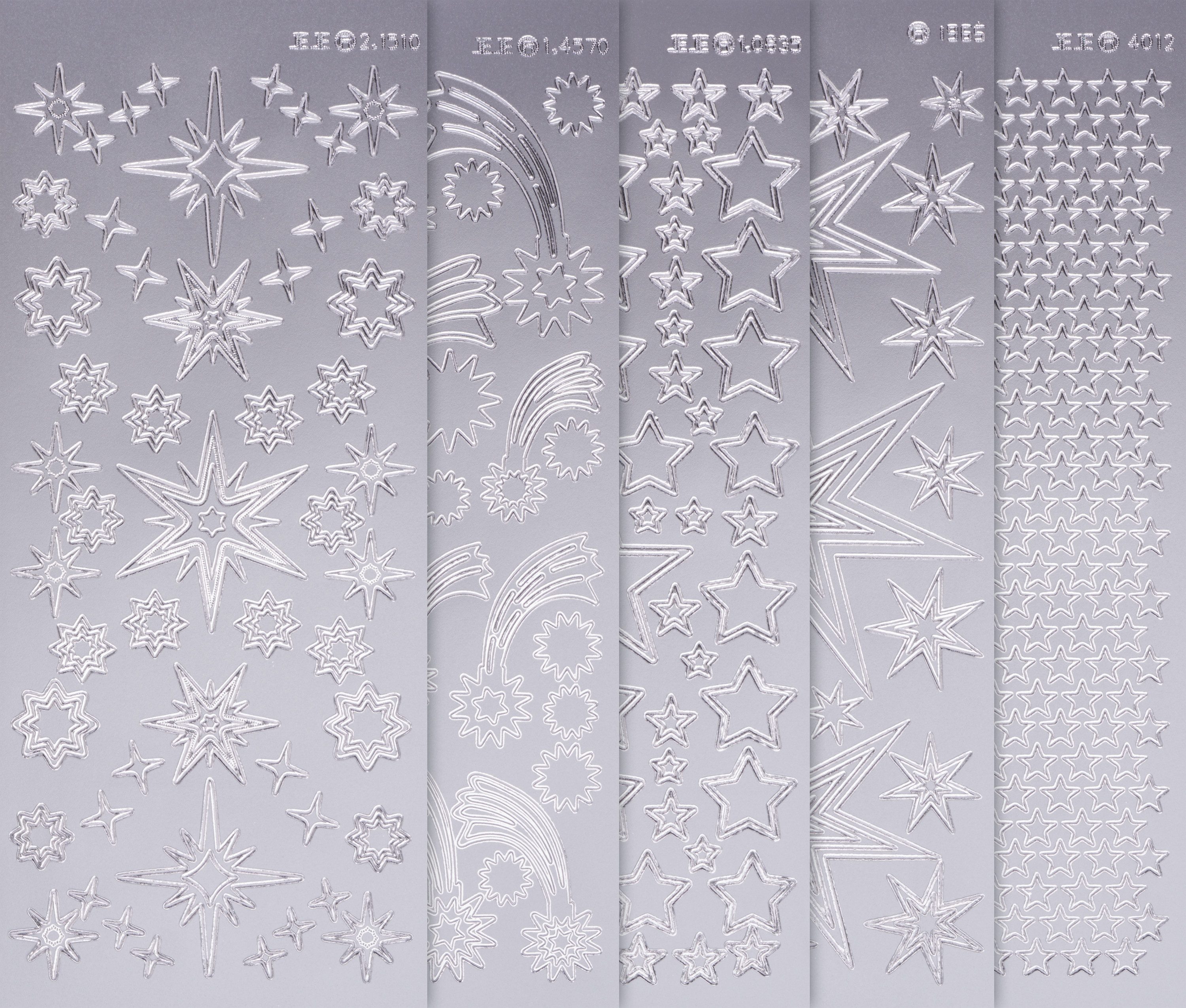 VBS Reliefsticker-Set 'Sternenzauber' mit tollen verschiedenen Sternenmustern. Im Set sind 5 Bögen (ca. 10 x 13 cm) enthalten. Diese Sticker können zum Beispiel für Grußkarten, Geschenkanhänger und Fensterbilder aus Karton genutzt werden.