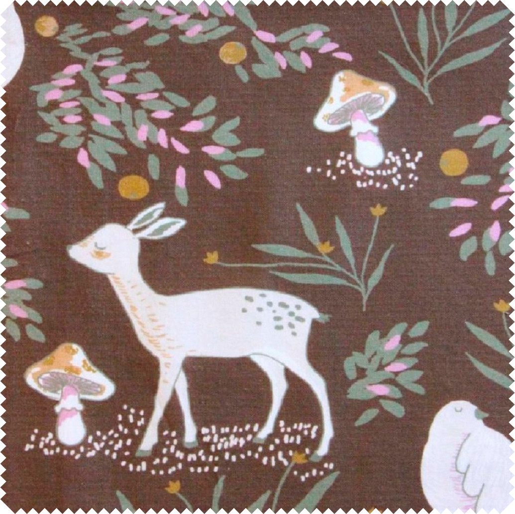 Toller Baumwoll-Stoff 'Rehe und Pilze', Breite ca. 150 cm, Stoffgewicht ca. 115 g/m². Eine Meterware aus 100 % Baumwolle mit herbstlichen Motiven wie Rehe, Pilze und Zweige. Perfekt zum Nähen von Accessoires, Kissenhüllen, Tischwäsche und mehr. Schön in Kombination mit Uni-Stoff, Bändern, Label oder Applikationen.