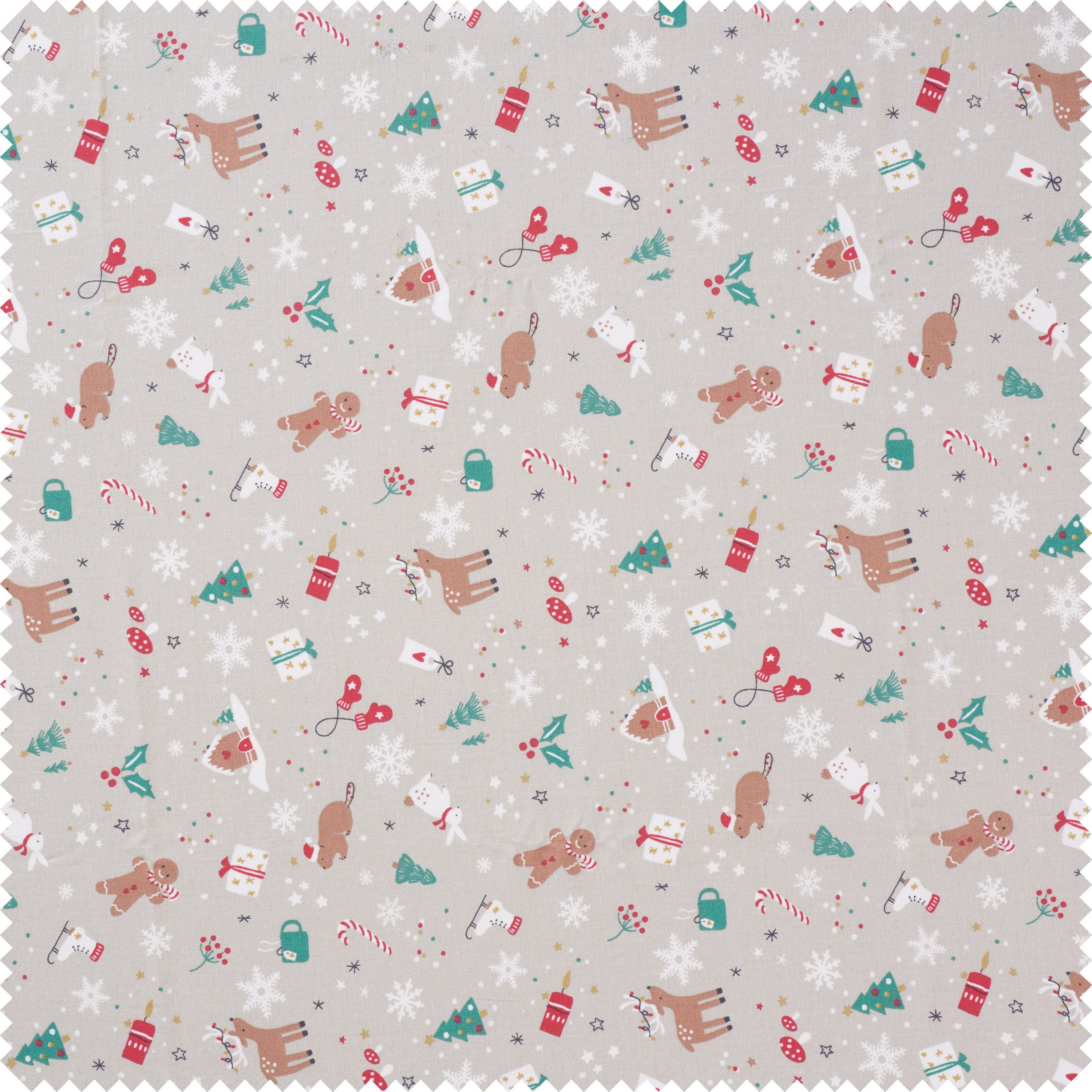 Sorge mit dem Baumwoll-Stoff 'Lappland' für weihnachtliche Stimmung! Mit seinem Motiv aus Lebkuchenmann, Rentier, Tannenbaum, Geschenken und vielem mehr bringt er gemütliches Flair in jeden Raum. Eine Meterware mit einer Breite von 150 cm und einem Gewicht von 115 g/m². Das Material ist 100 % Baumwolle. Lass dich von den weihnachtlichen Motiven verzaubern. Bestelle jetzt und verbringe eine schöne Zeit in deinem Nähstübchen.