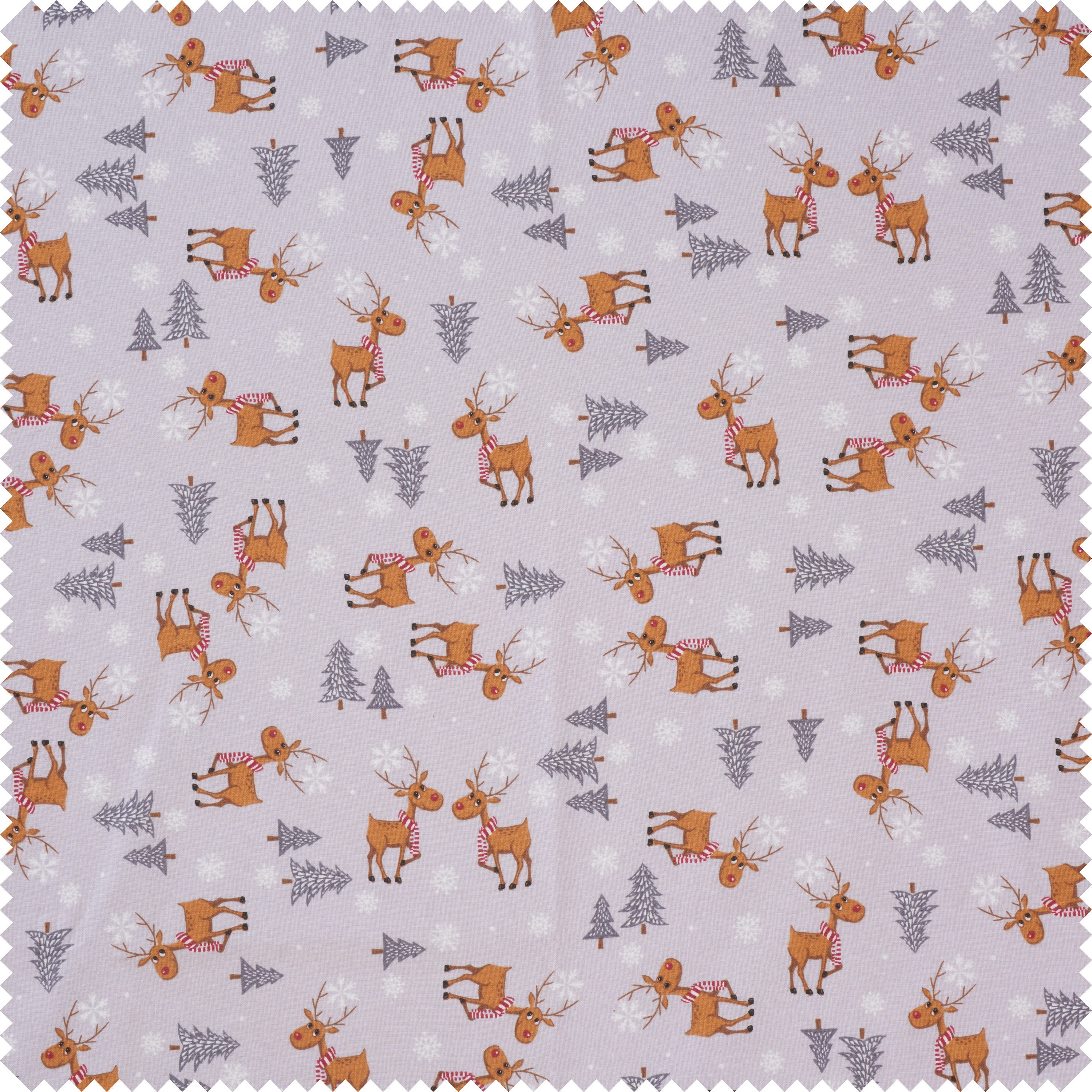 Baumwoll-Stoff 'Red Nose Reindeer' mit einem schönen Motiv aus Rentieren, Tannenbäumen und Schneeflocken. Der Stoff eignet sich perfekt zum Nähen von Dekorationen für die Weihnachtszeit. Breite 140 cm, Gewicht 125 g/m². Die Motivgröße beträgt 0,5-2,5 cm. Der Baumwoll-Stoff 'Red Nose Reindeer' besteht zu 100 % aus Baumwolle. Er ist vielseitig und gut zu verarbeiten.