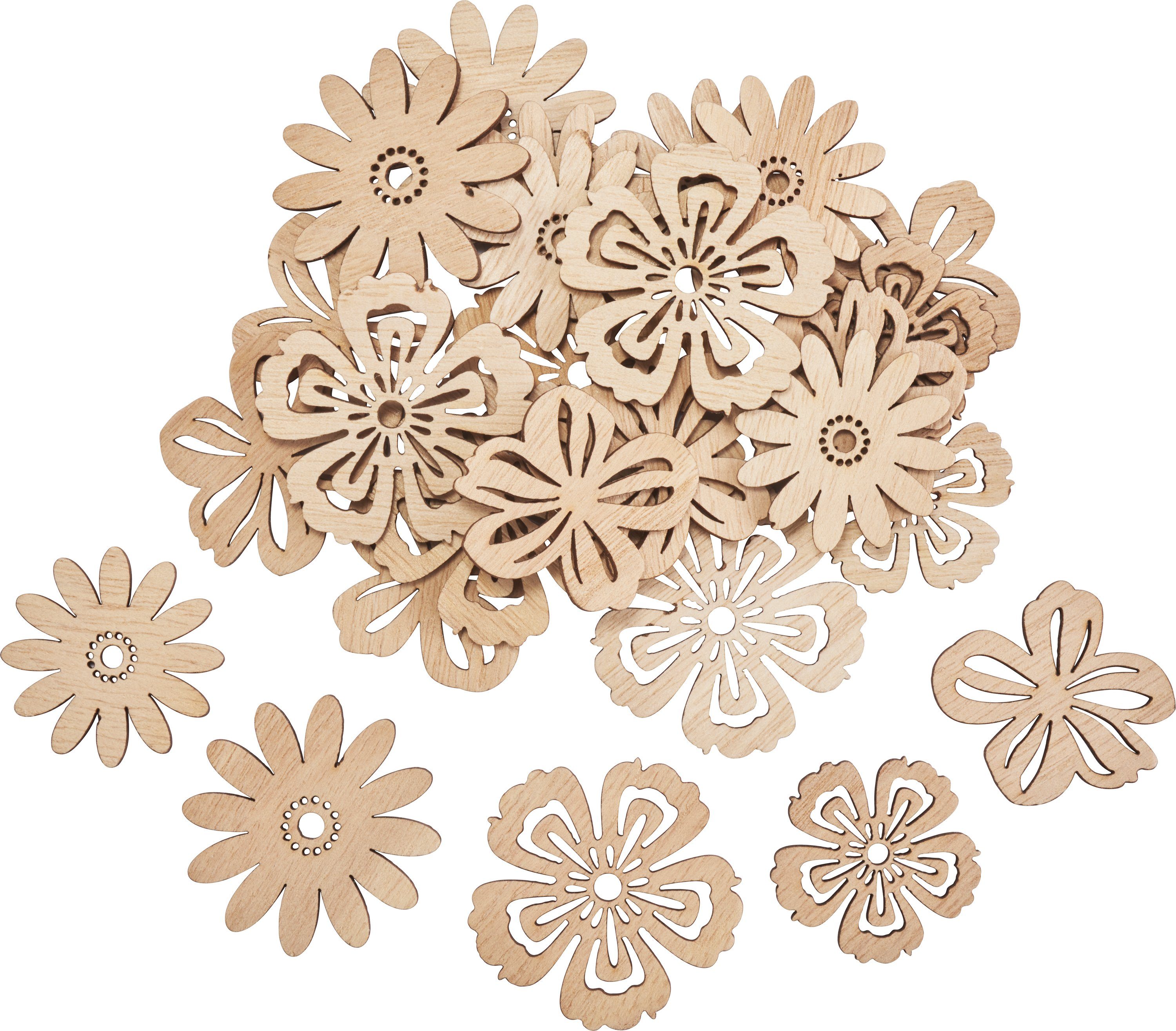 VBS Streuteile Blüte 'Floretta', 27 Stück mit einer Размер von ca. 3,5 – 4,7 cm aus Holz. Die Stärke liegt bei ca. 2,5 mm. Das gelaserte Material kann produktionsbedingt an den Kanten leichte Brandspuren aufweisen. Die hübschen Blüten sind eine klasse Dekoration für den Frühling. Ob zum Verzieren von Vasen, Windlichtern, Boxen, Grußkarten, Scrapbook-Alben und Geschenkverpackungen oder aber auch zum Verbasteln in Kränzen und Gestecken – die Blüten lassen sich vielseitig einsetzen und zusätzlich mit Bastelfarben und Glitter gestalten. Farblich passende Schleifenbänder und Naturmaterialien wie Beeren, Trockenblumen, Moos und mehr runden die Frühlingsdekoration ab.
