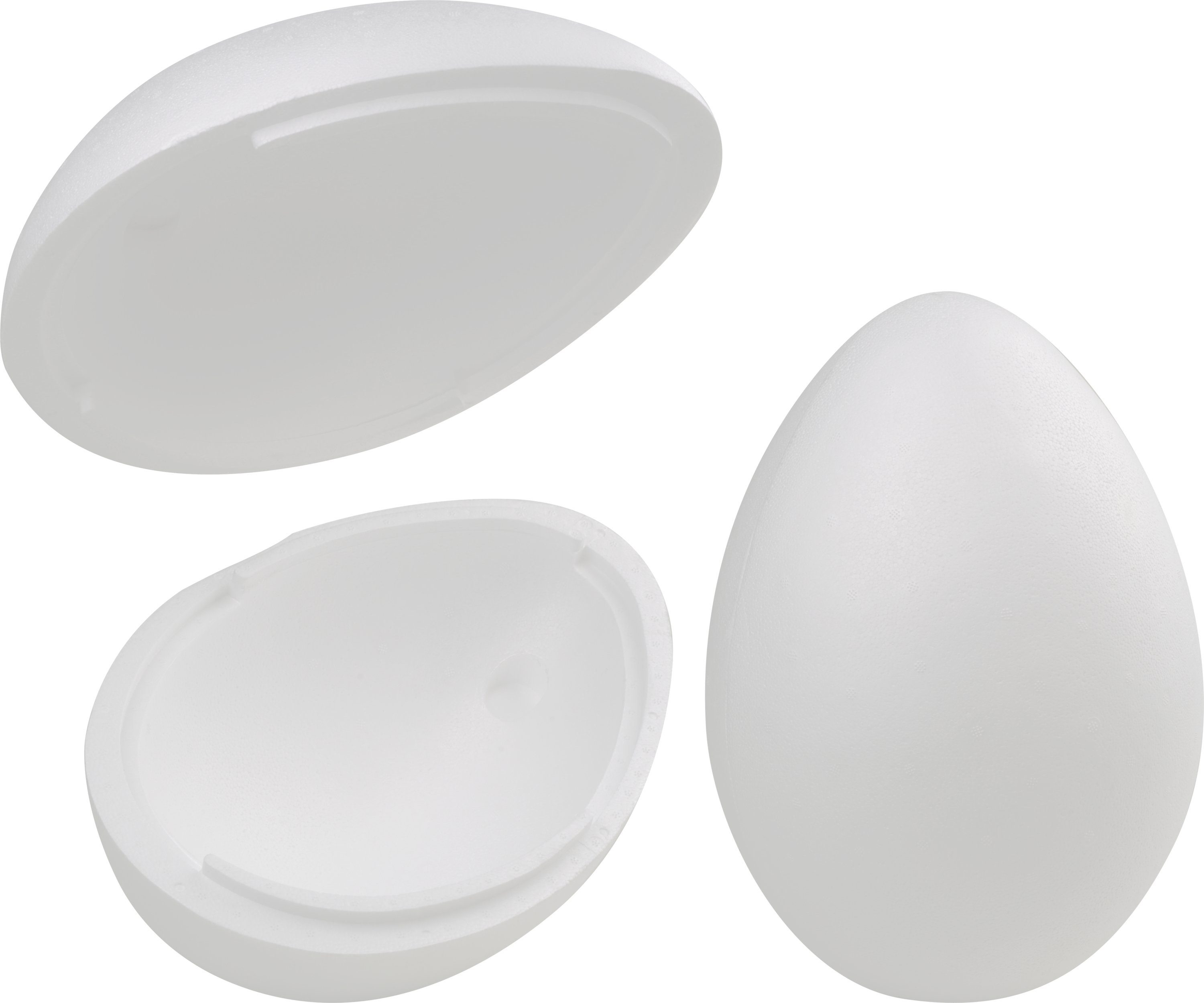 Das Set Styroporei mit 2 extragroßen Styroporeiern in der Размер 21 x 30 cm ist 2-teilig und eine perfekte Bastelgrundlage für große Ideen mit der Eiform. Das Material ist feinporig und kann mit vielen Bastelfarben bemalt werden. Mit Styroporkleber werden Papier oder andere Bastelmaterialien aufgeklebt. Mit Stecknadeln können Fäden und Pailletten fixiert werden. Die Styroporeier sind hochkant teilbar und passen perfekt aufeinander. Im Hohlraum können sogar kleine Geschenke versteckt werden. Ein großartiger Bastelspaß!