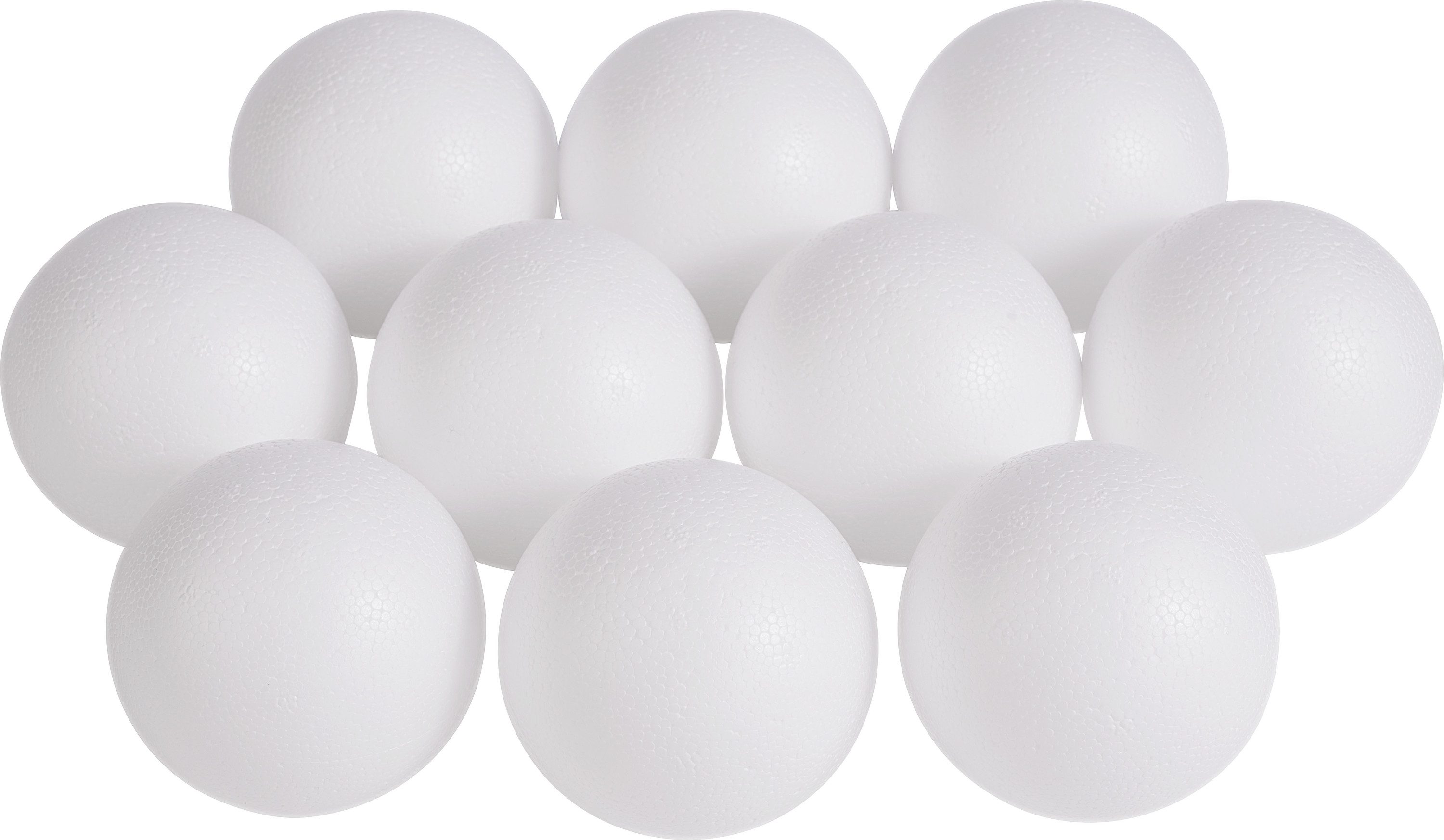 Dieses Set besteht aus insgesamt 10 Styroporkugeln mit einem Durchmesser von 8 cm.