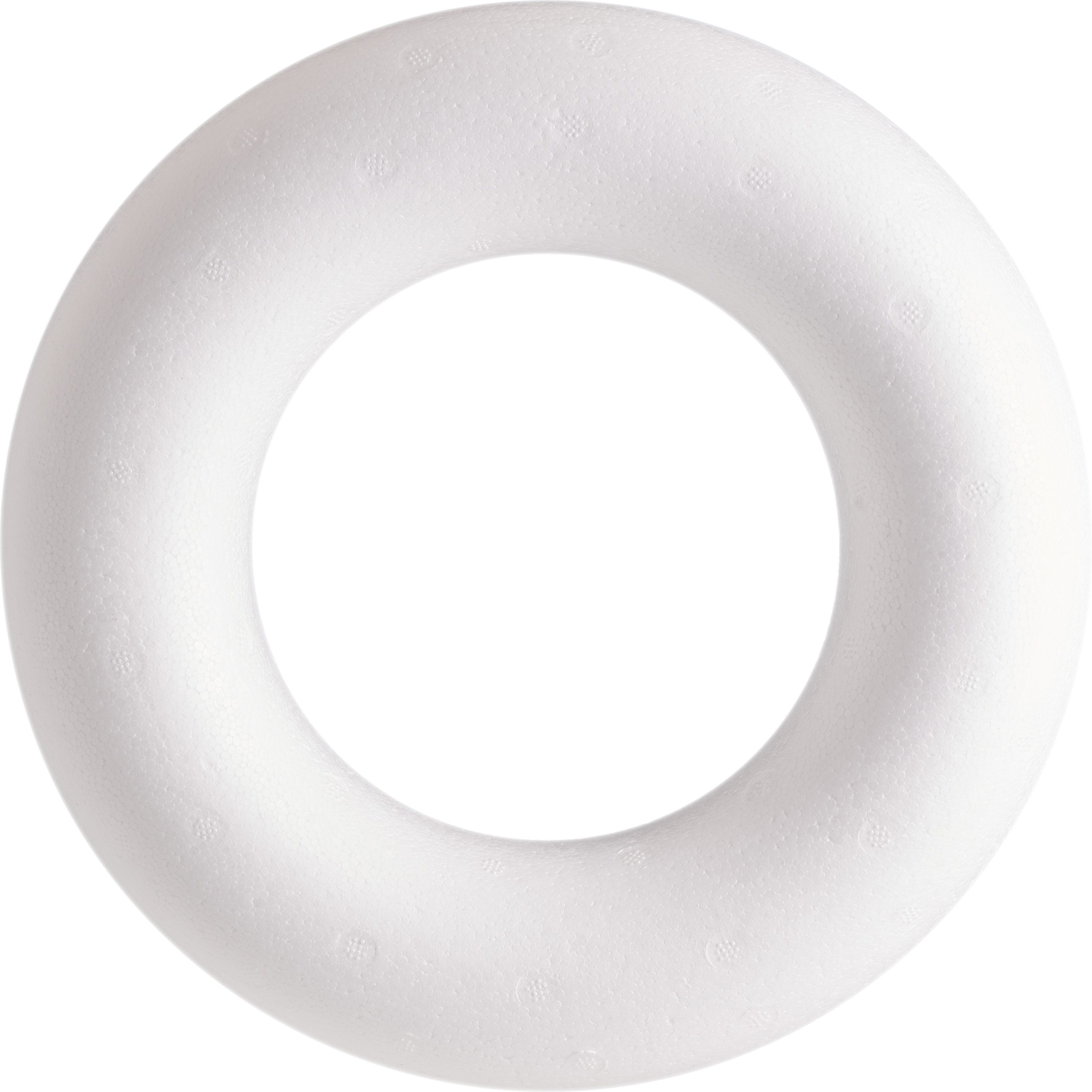 Weißer Styroporring mit einem Durchmesser von ca. 22 cm. Das Innenmaß beträgt ca. 13 cm.Der weiße Styropor-Flachring eignet sich für viele Basteltechniken: