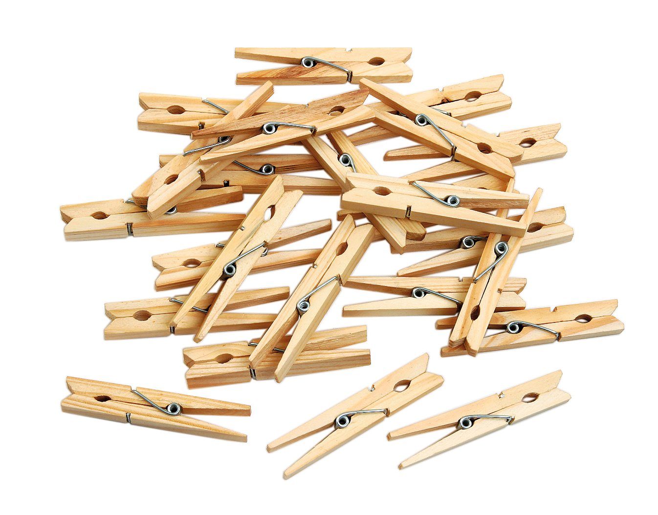 Befestigen Sie einfach Grußkarten oder Tischkärtchen an den Wäscheklammmern und schon haben Sie eine tolle Deko-Idee umgesetzt. Die Holzklammern sind aus unbehandeltem Holz und können noch bemalt werden.