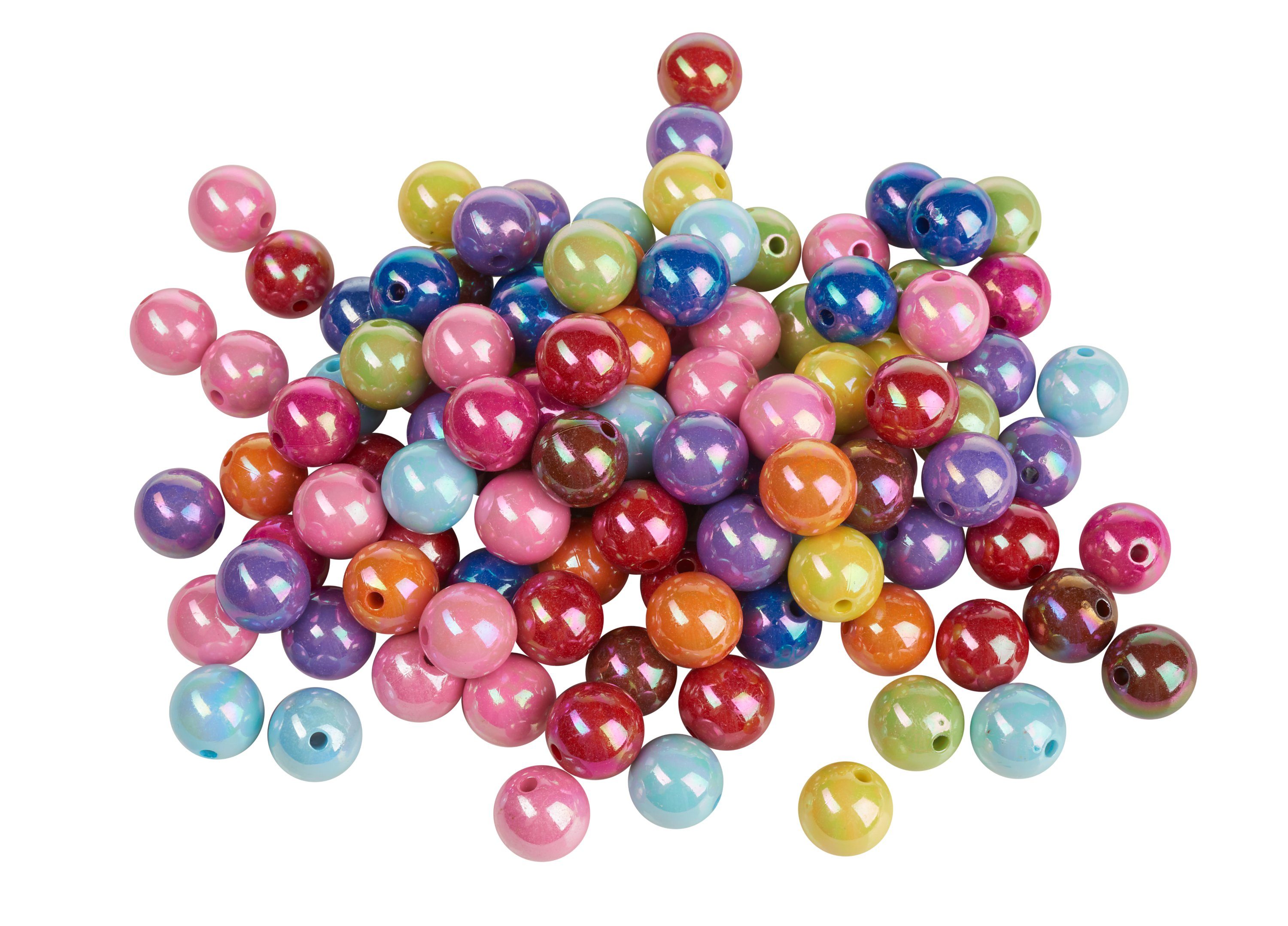 VBS Acrylperlen 'Bunt-Opak', 250 g in der praktischen Großpackung. Die Perlen haben einen Ø von ca. 15 mm und besitzen keine Nahtstellen. Der Innen-Ø beträgt ca. 2,6 mm. Für wunderschöne Halsketten und Armbänder ideal, die sich mit Metallanhängern, Quasten und Charms passend ergänzen lassen. Auch Schlüsselanhänger und weitere Accessoires können super aus den Perlen gebastelt werden.