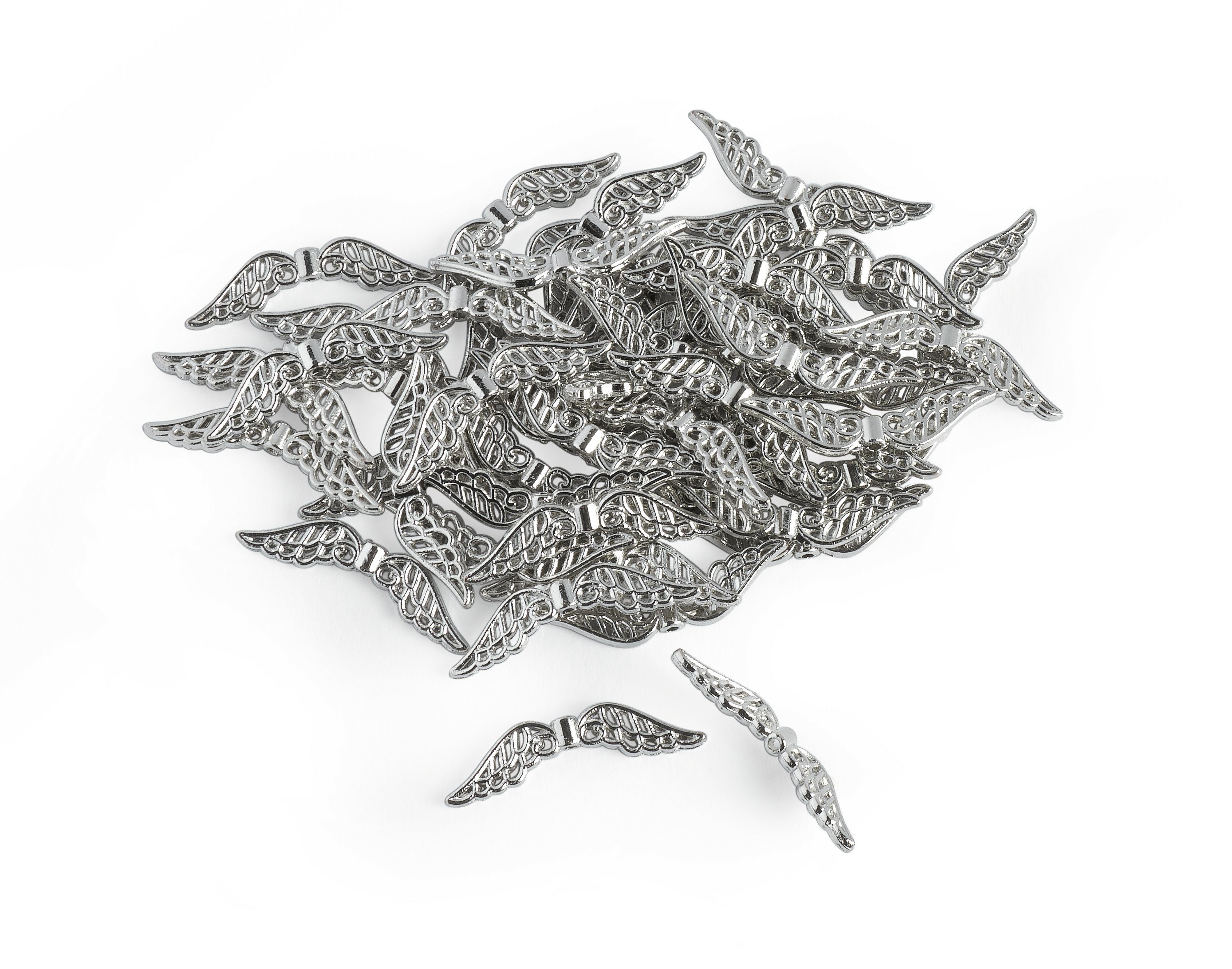 VBS XXL Pack mit 50 Flügelperlen Anhänger aus Metall. Gestalten Sie schöne Schmuck-Designs. Размер ca. B 31 x H 7 mm. Loch-Ø ca. 1 mm. Die Flügelperlen eignen sich für moderne Schmuck-Design und können sehr schön mit anderen Perlen kombiniert werden. Basteln Sie himmlische Ketten für tolle Momente.