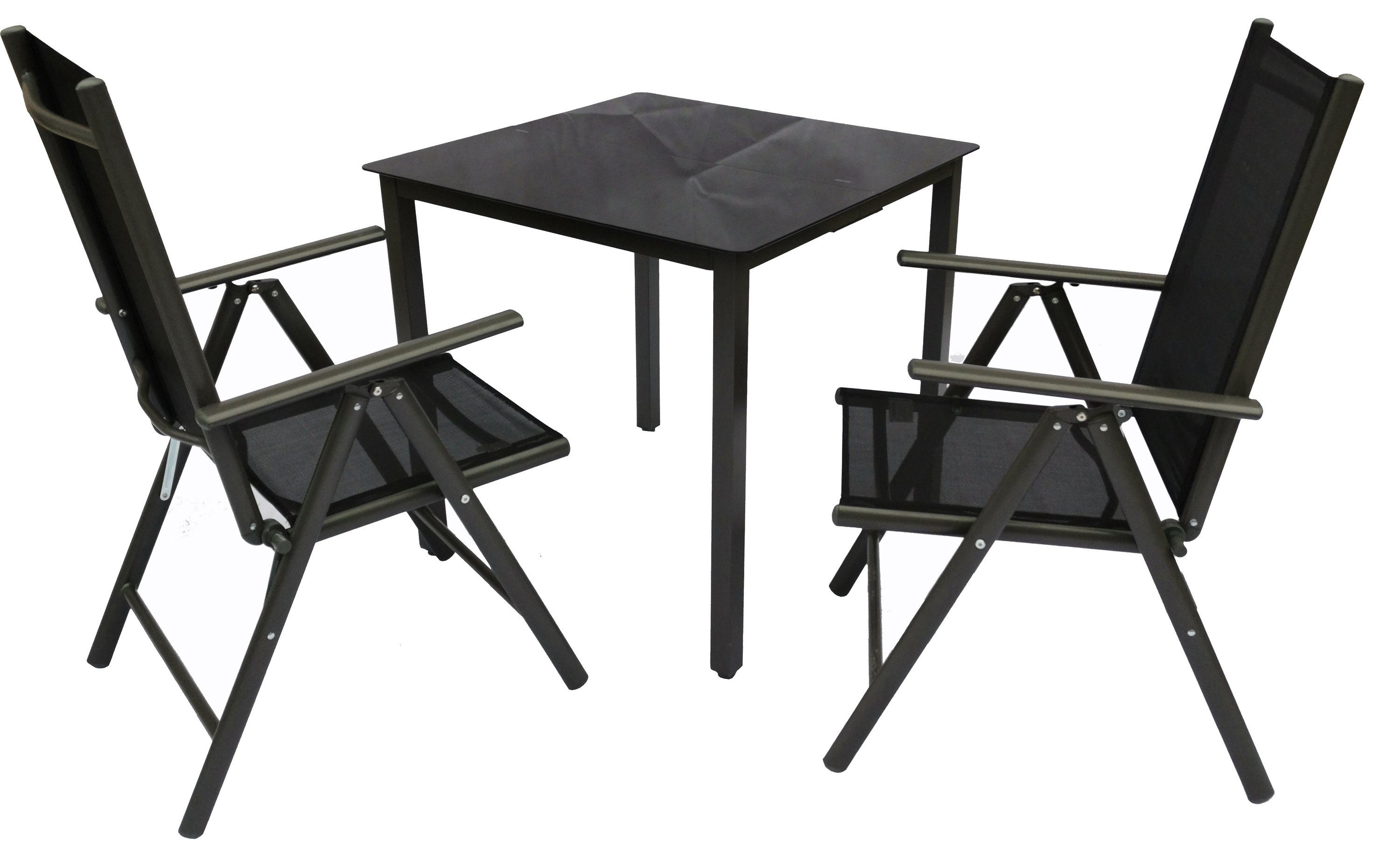VCM Garten-Essgruppe 3 tlg Alu Glas Gartenset Tisch Sitzgruppe 80SW
