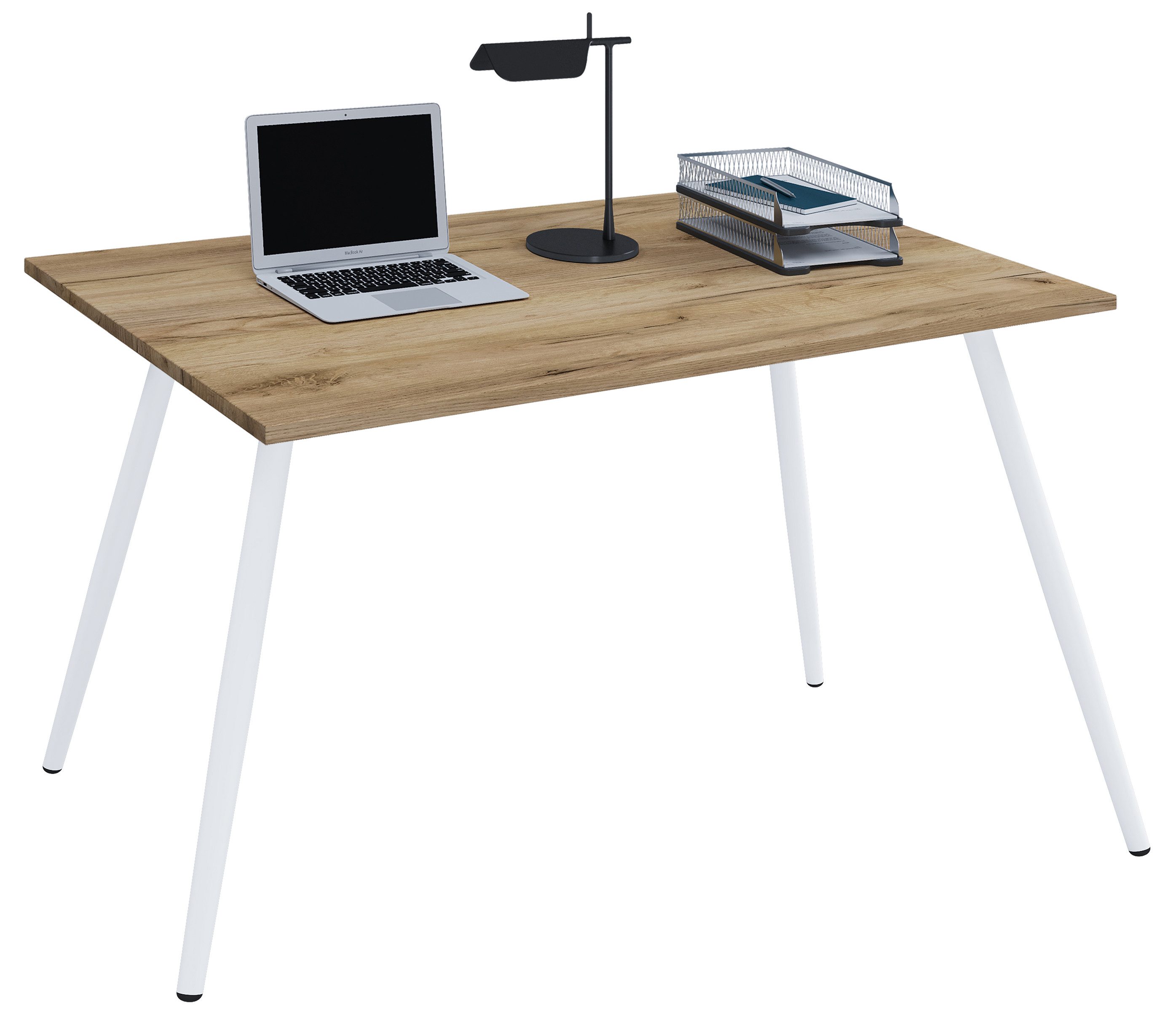 Mit dem Schreibtisch "Salia" ist dem Desginer ein absoluter Blickfang gelungen. Die Füße im skandinavischen Retro Look lassen den Tisch nahezu schwerelos erscheinen. Das Möbel besteht aus robustem Holz und einem zeitlosem Design. Die Schreibtischoberfläche hat eine robuste Melaminharzbeschichtung, was das Produkt pflegeleicht macht und für eine lange Lebensdauer sorgt.