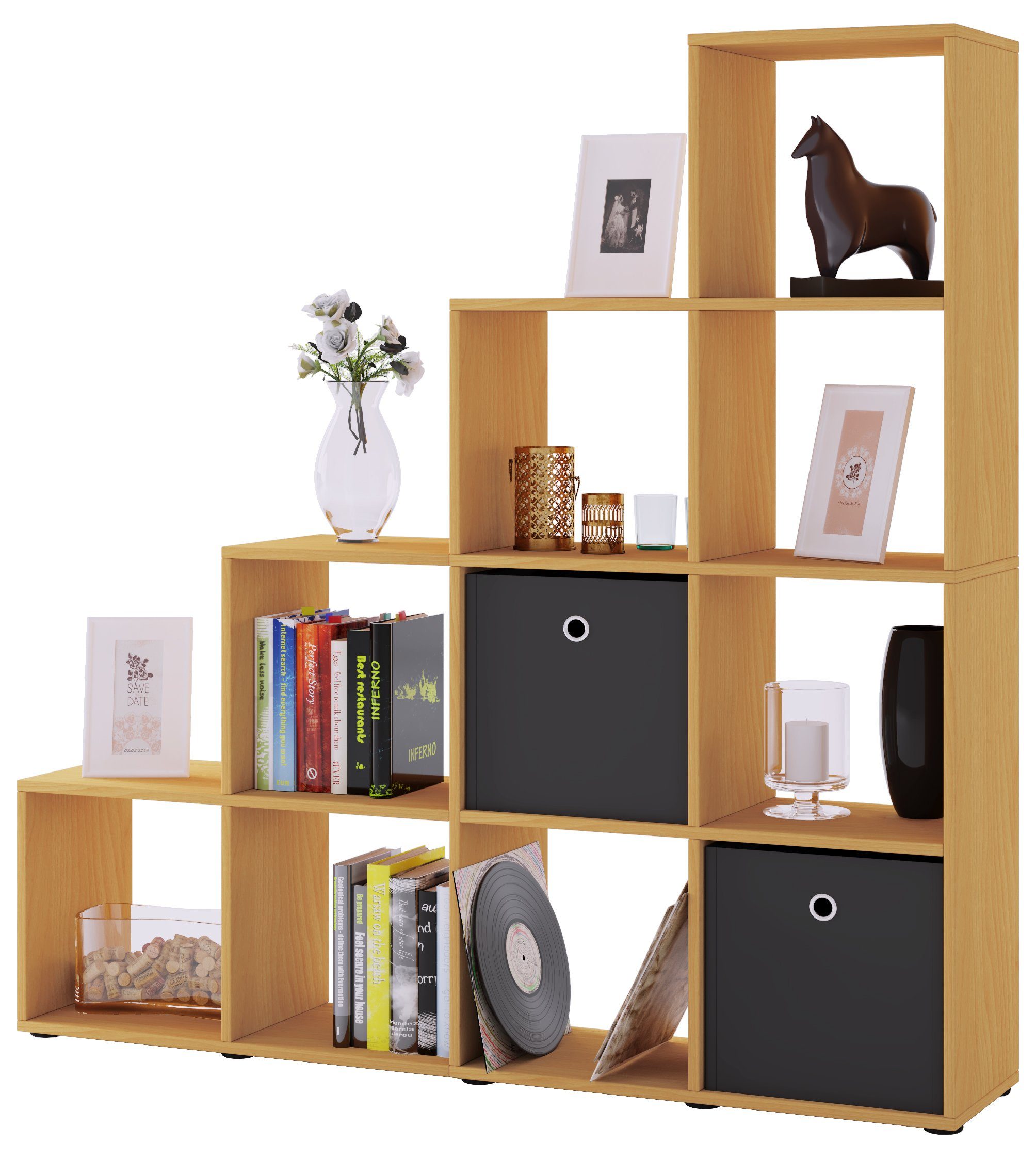 Modellbezeichnung | Holz Stand Treppenregal Regal 10 Fächer Napoli |