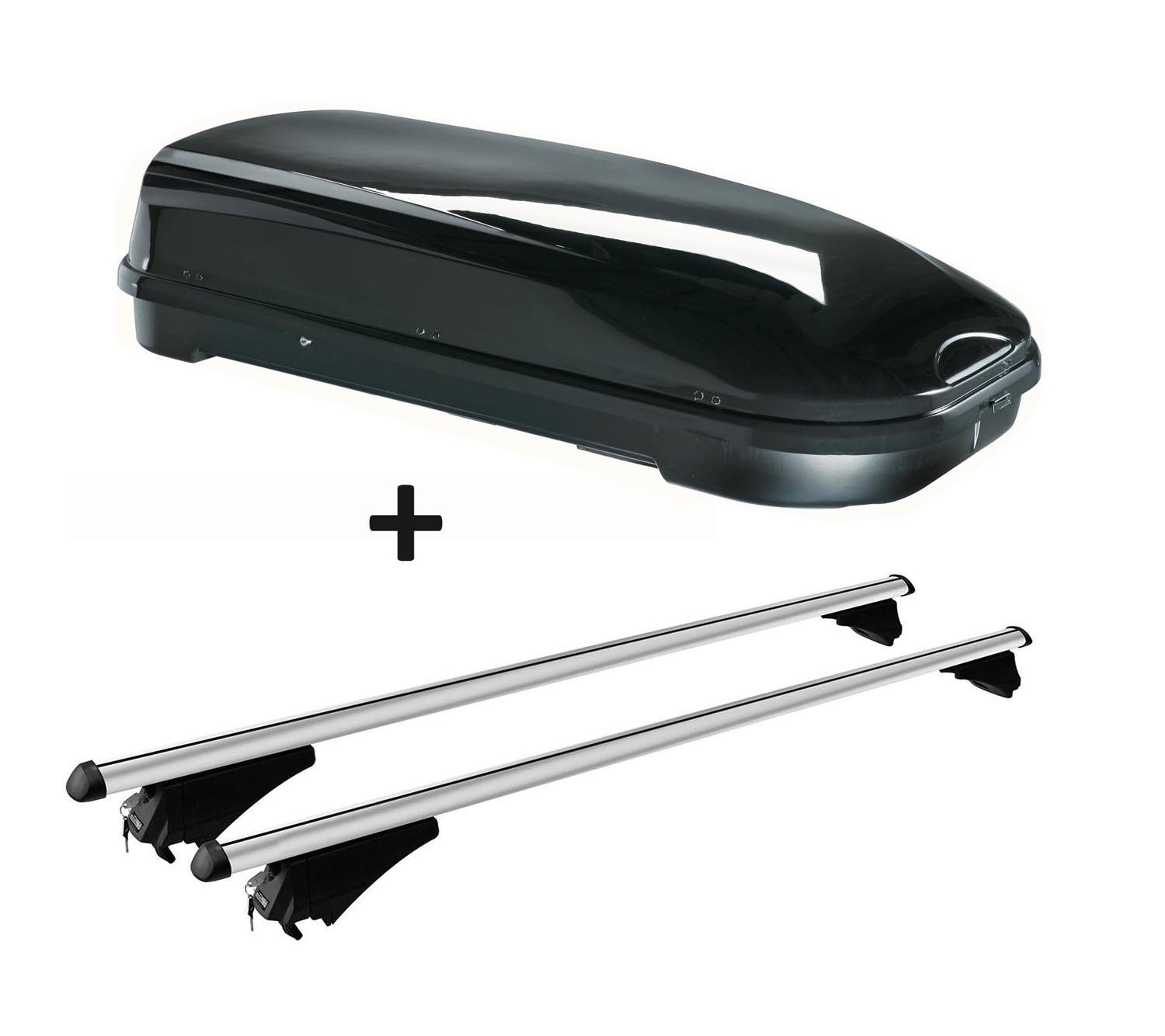 Skibox schwarz VDP JUFL580 stabiler Auto Dachkoffer 580 Liter abschließbar + Alu-Relingträger Dachgepäckträger für aufliegende Reling im Set für Opel Zafira B 2008-2012