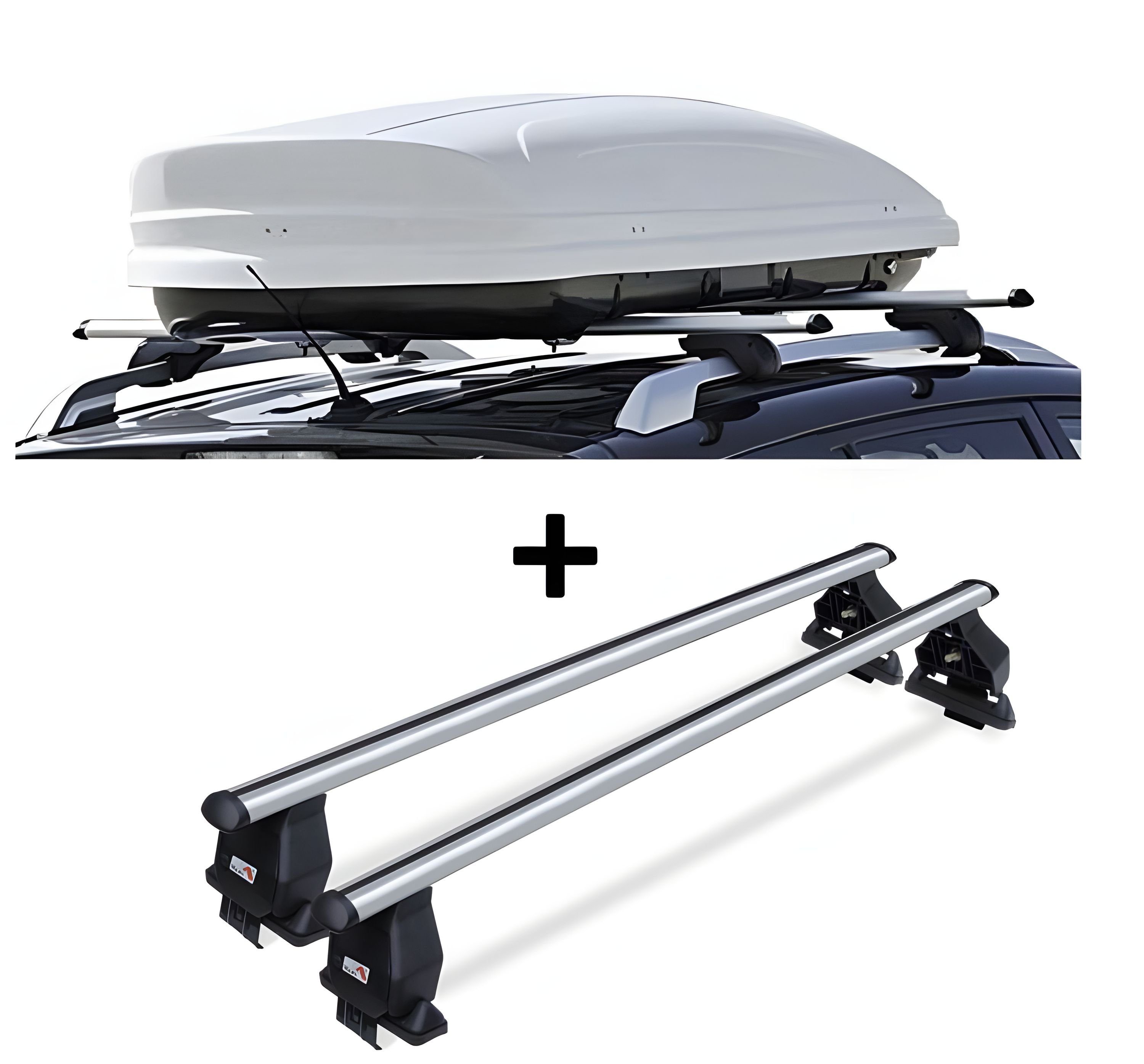 Dachbox VDP-MAA460 weiss abschließbar 460Ltr + Dachträger TEMAfür Chevrolet Aveo (5 Türer) 2009-2011