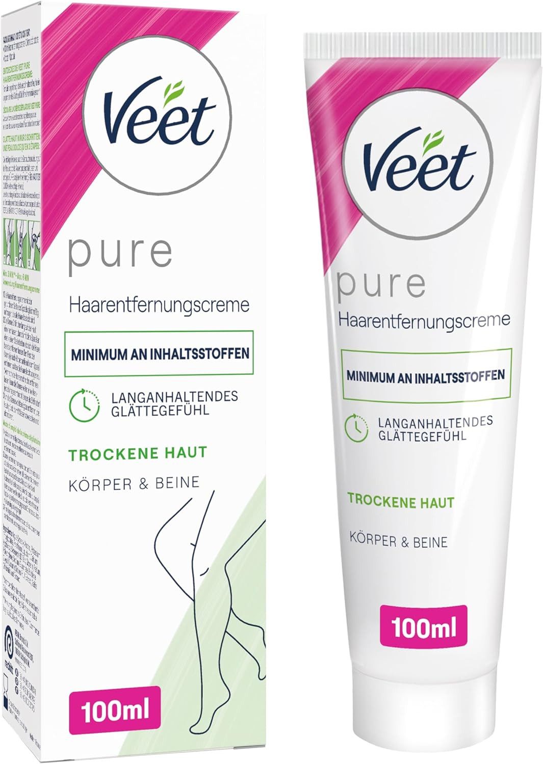 Die dermatologisch getestete Veet Pure Enthaarungscreme ist auch für die Enthaarung trockener Haut optimal geeignet