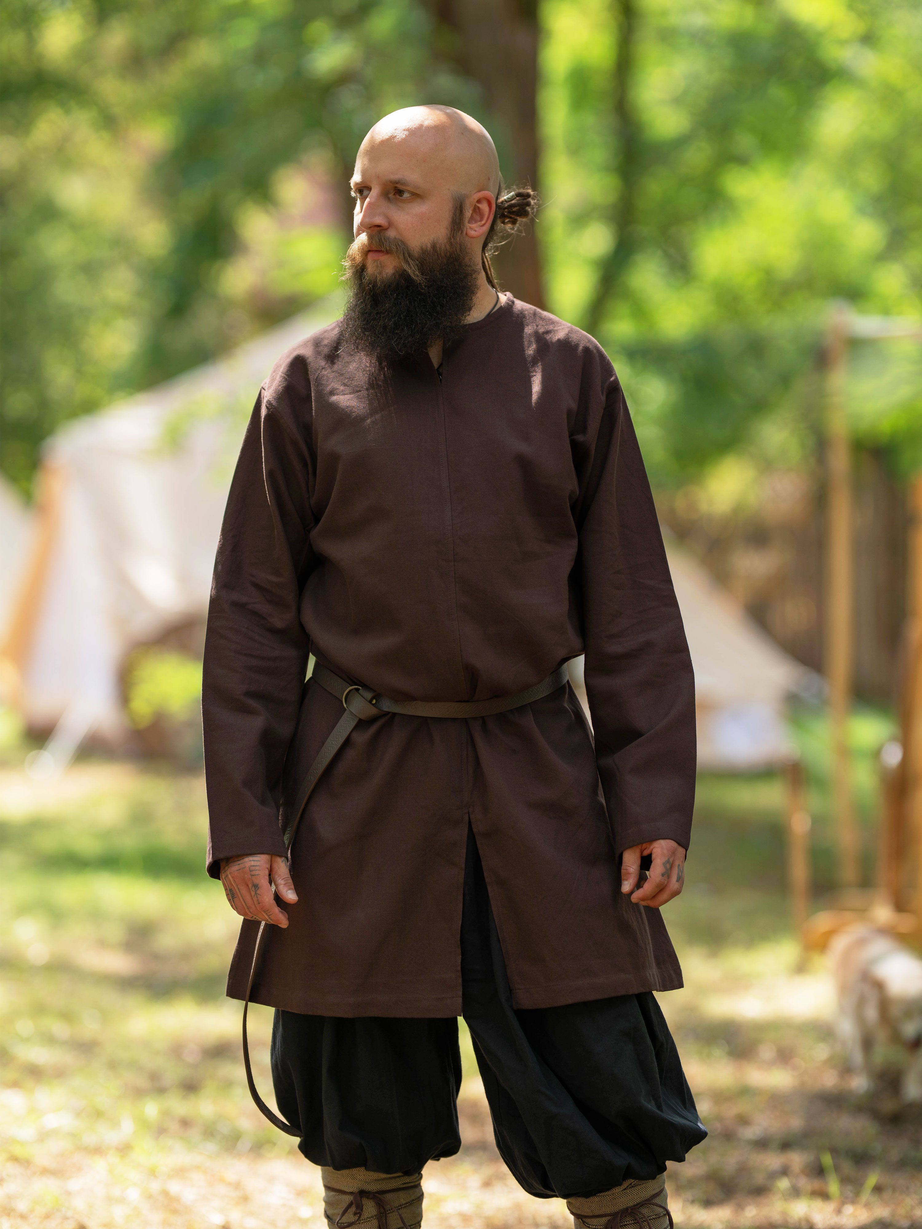 Lieferumfang: 1x Schlichte Mittelalter Tunika langarm Braun "Malte"