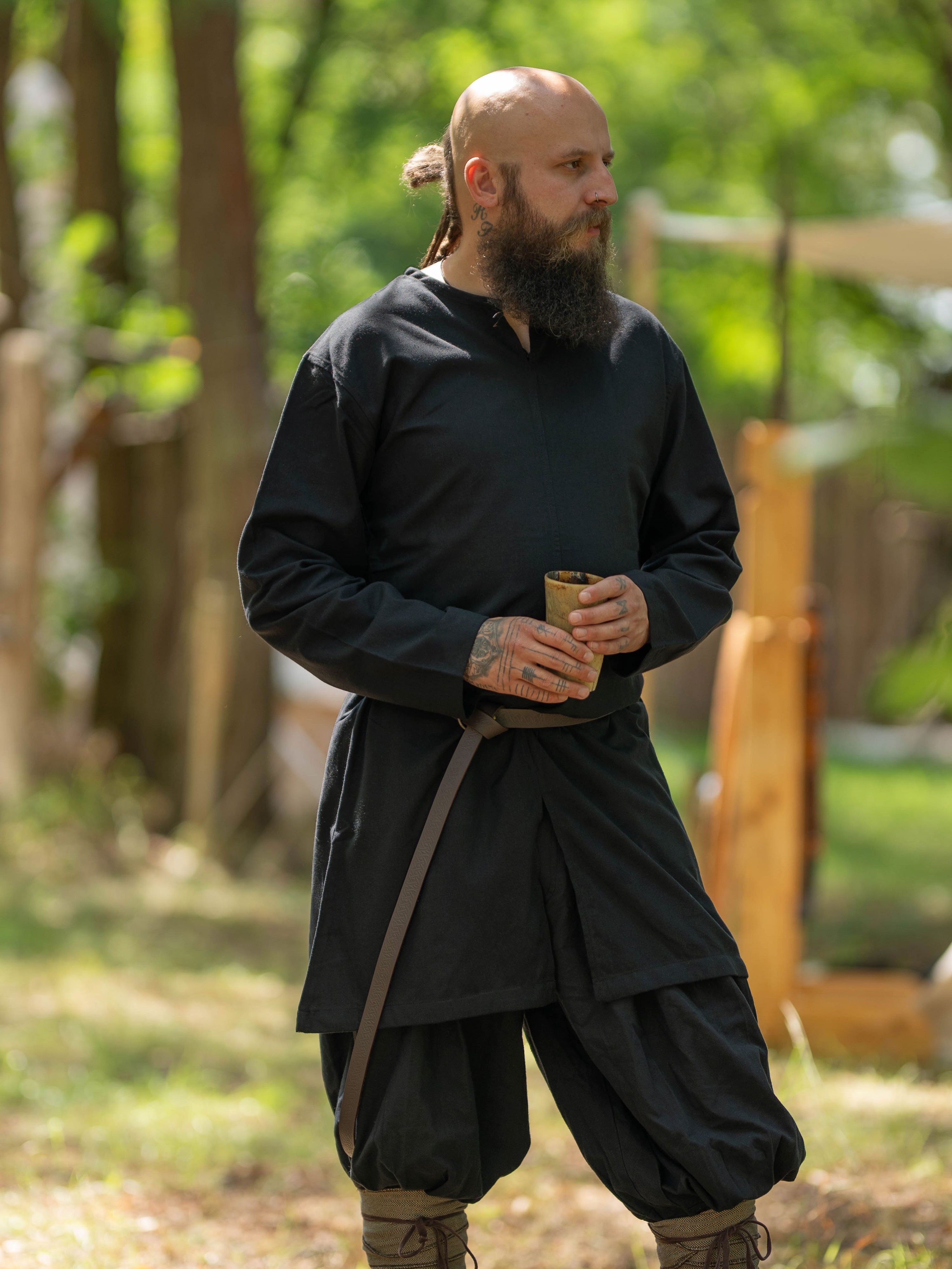 So kann die schwarze Tunika vielseitig kombiniert werden: ob als Untertunika oder Übertunika, durch ihre schöne Farbe passt sie gut zu vielen anderen Teilen. Auch ist die Langarm-Tunika bei verschiedenen Veranstaltungen passend: Mittelaltermarkt, Larp-Veranstaltungen oder auch Faschingsfeste. Dieses Oberteil ist ein Basic-Stück, was in jeden Kleiderschrank von Mittelalterfans gehören sollte.
