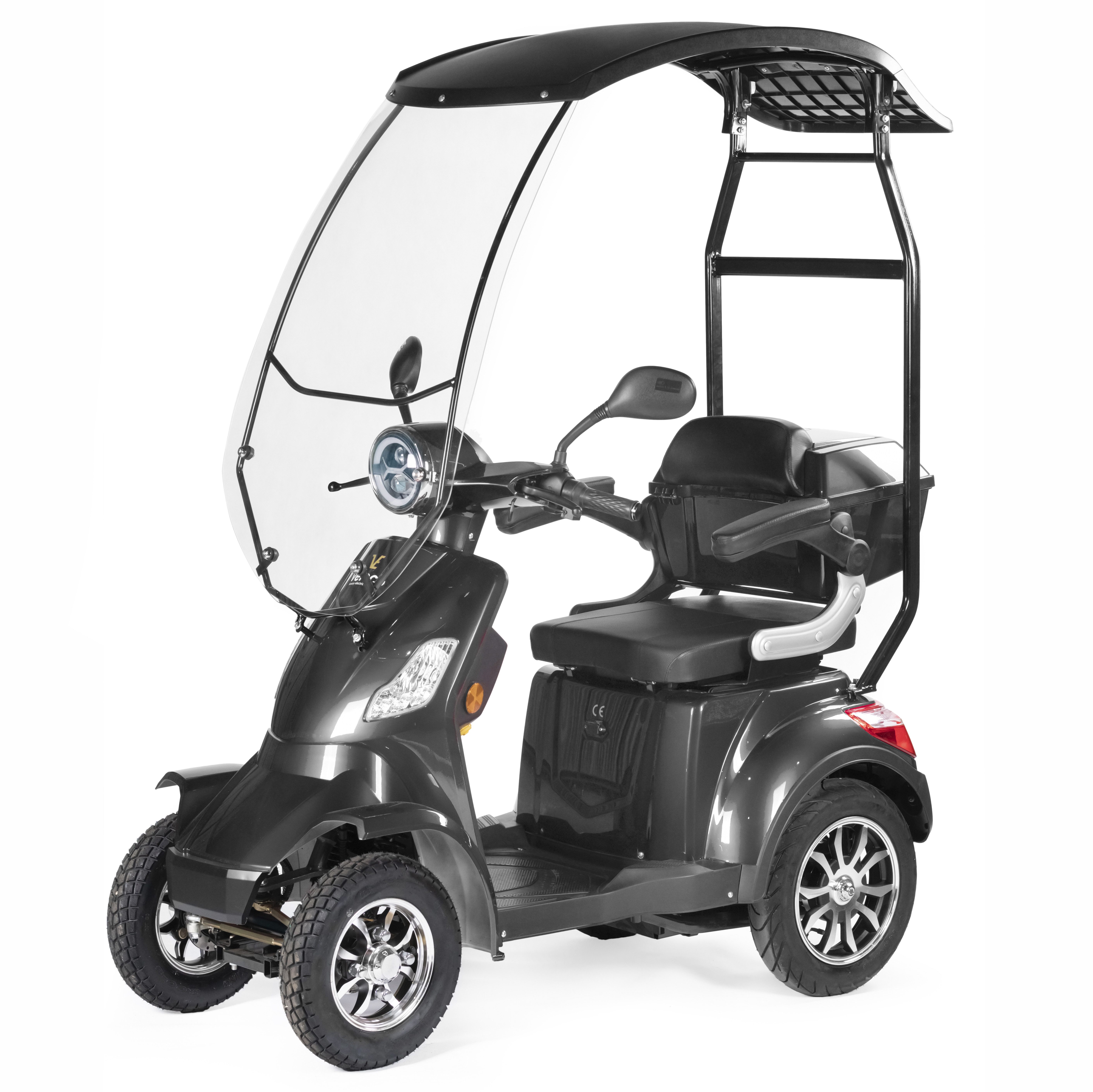 Ausstattung | 2 Geschwindigkeitsstufen Leiser und bürstenloser 1000 Watt Motor Dach mit Windschutzscheibe Digitale Tachoanzeige Abschließbarer Stauraum und Kofferraum Rückwärtsgang Feststellbremse USB-Ladebuchse Getränkehalter Einkaufsgriff Batterien und Ladegerät enthalten Volle Beleuchtung |