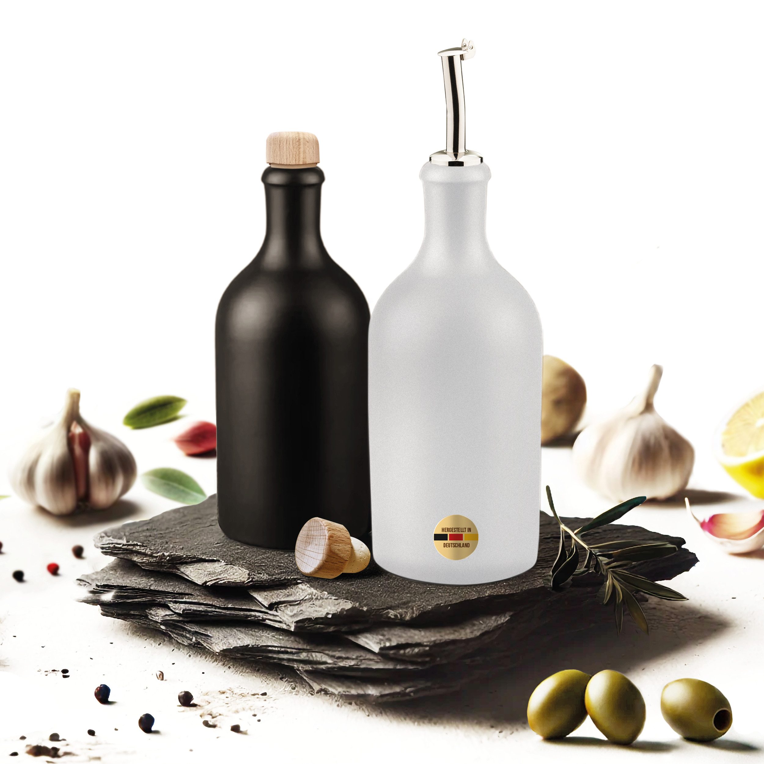 Veluxis Qualität für Ihre Küche – Feinsteinzeug Flaschen für höchsten Anspruch. Bringen Sie Stil und Funktionalität in Ihre Küche mit unserem Veluxis Öl und Essig Flaschen-Set, hergestellt in Deutschland. Jede Flasche aus hochwertigem Feinsteinzeug bietet 100% UV-Schutz und sorgt dafür, dass empfindliche Inhalte wie Öle und Essige ihre Frische und Qualität bewahren. Die ergonomische Form liegt perfekt in der Hand, während der tropffreie Ausgießer präzises Dosieren ermöglicht – kein nerviges Verschütten mehr! Mit dem lebensmittelechten Material bleibt der Inhalt sicher geschützt, und die Flasche ist leicht nachfüllbar und zu reinigen.