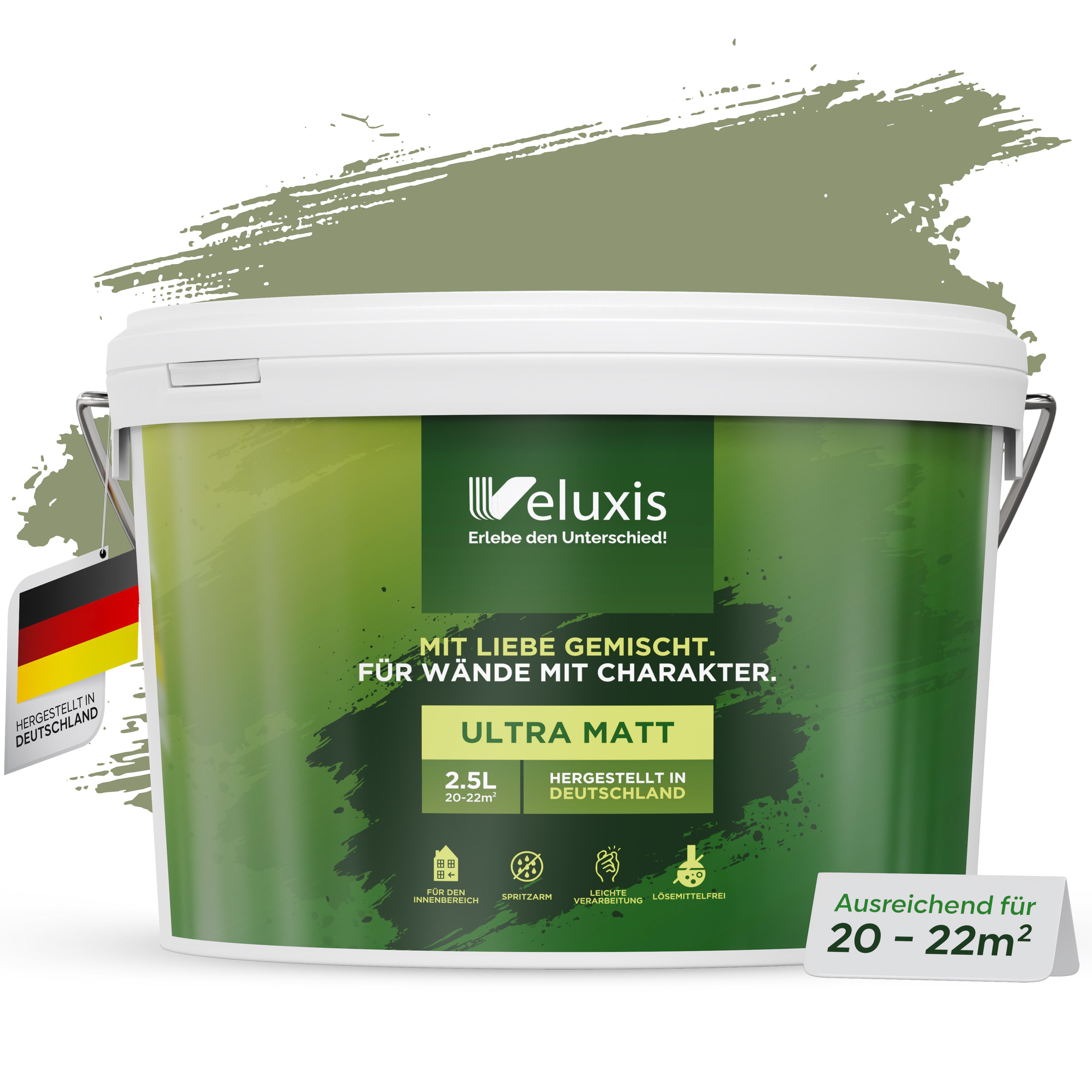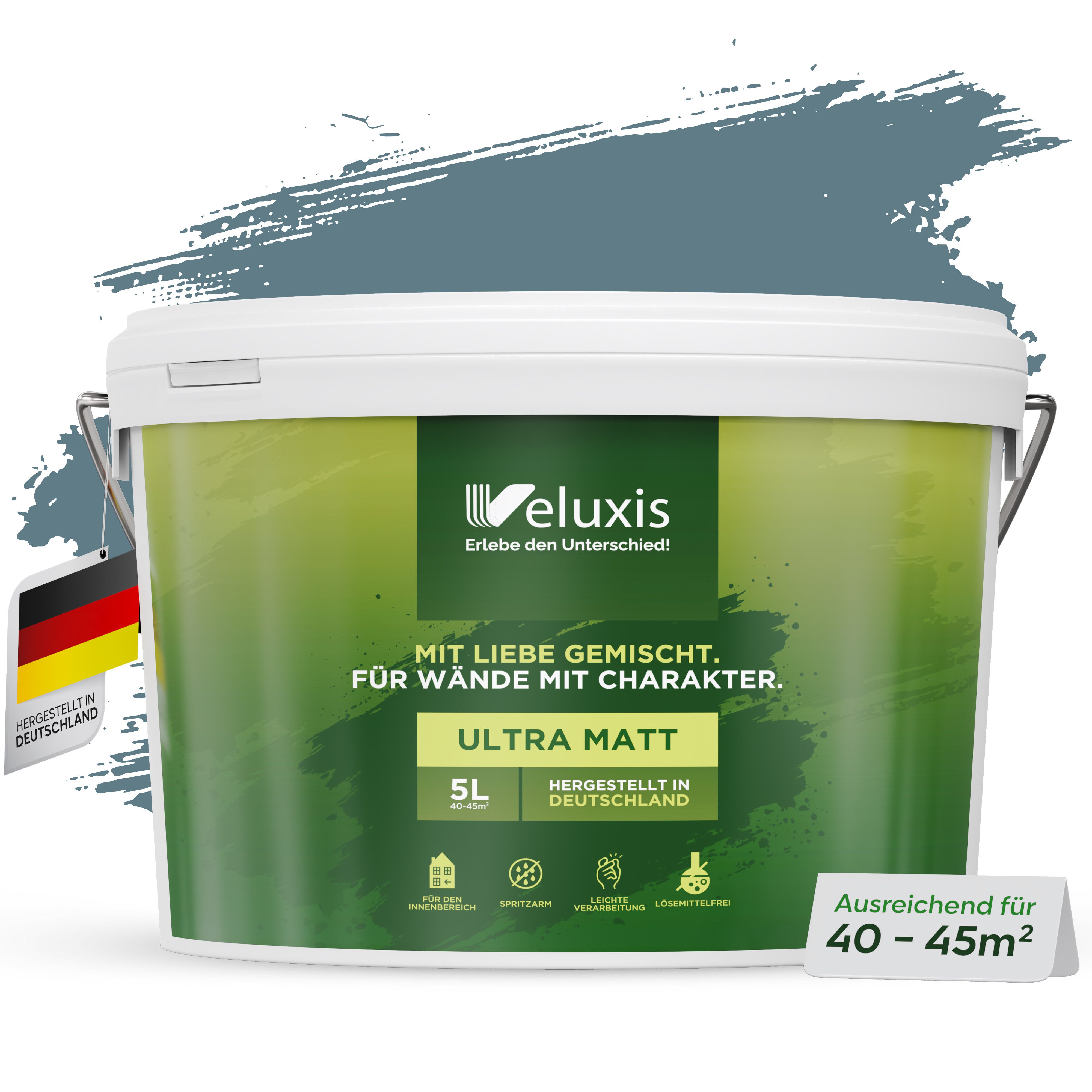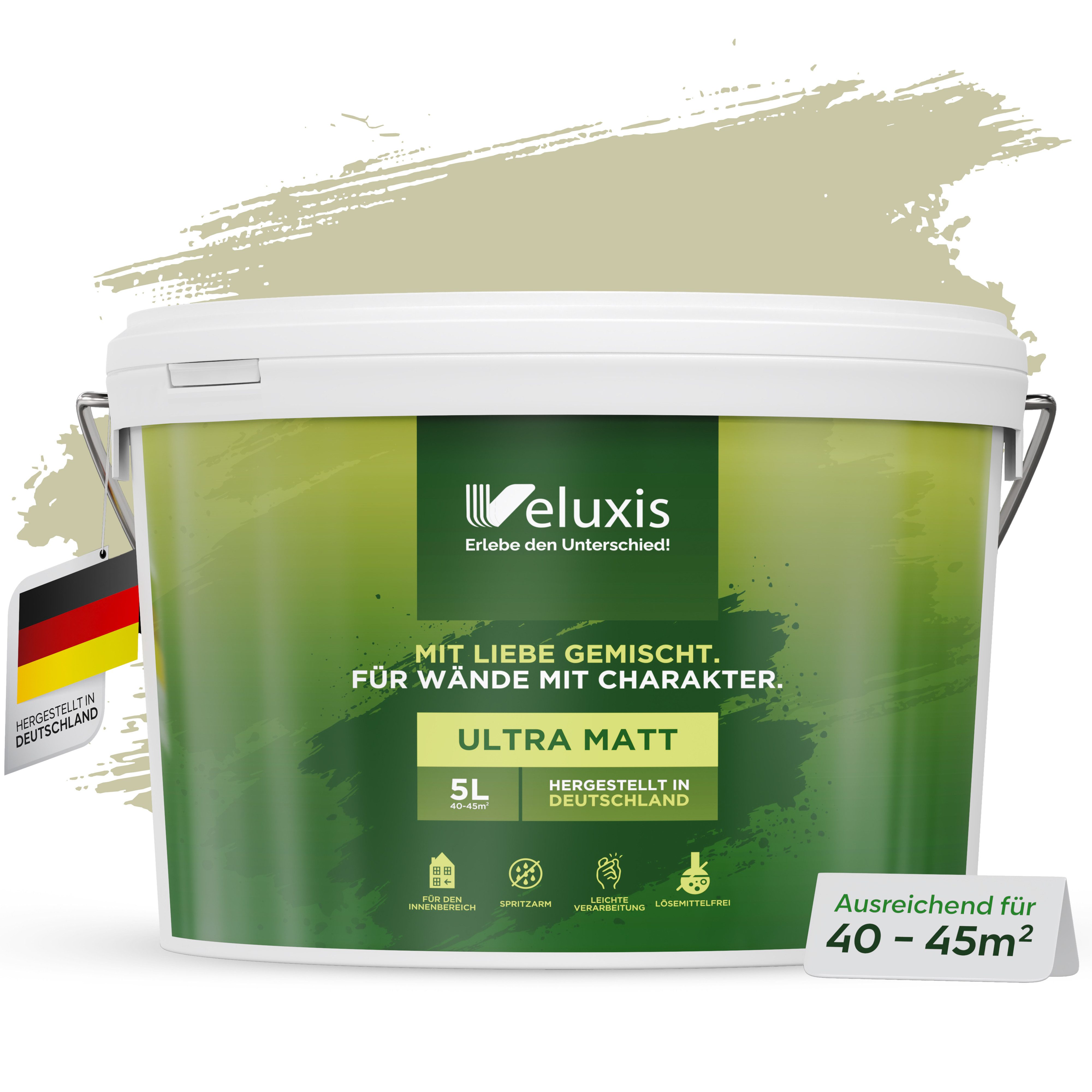 Qualität aus Deutschland: Produziert nach strengen Standards in Deutschland. In 2,5 l und 5 l erhältlich – in vielen dezenten, vielseitig kombinierbaren Farbtönen.